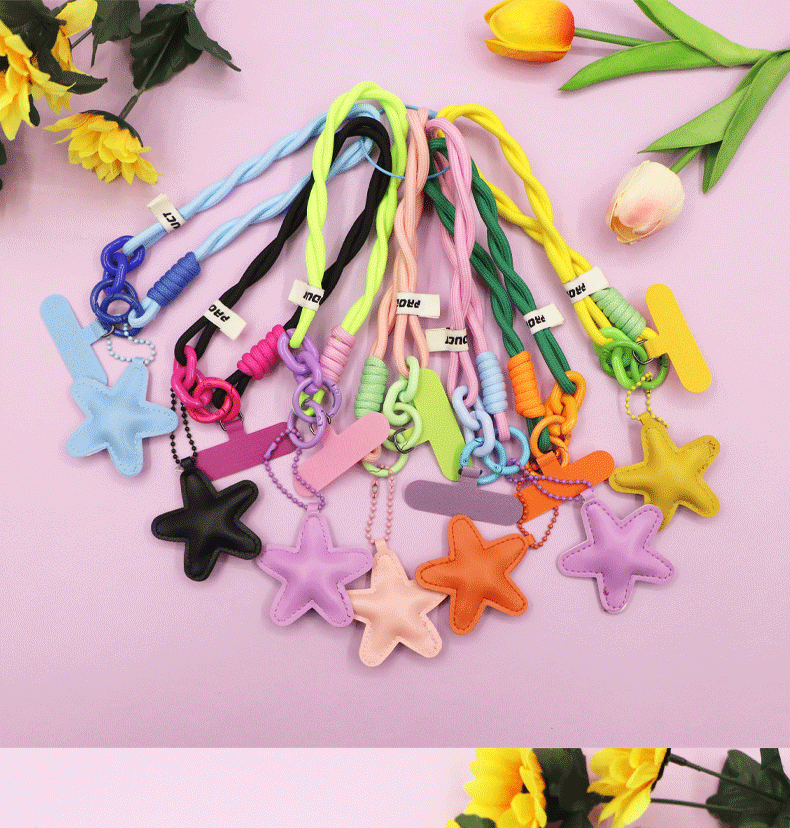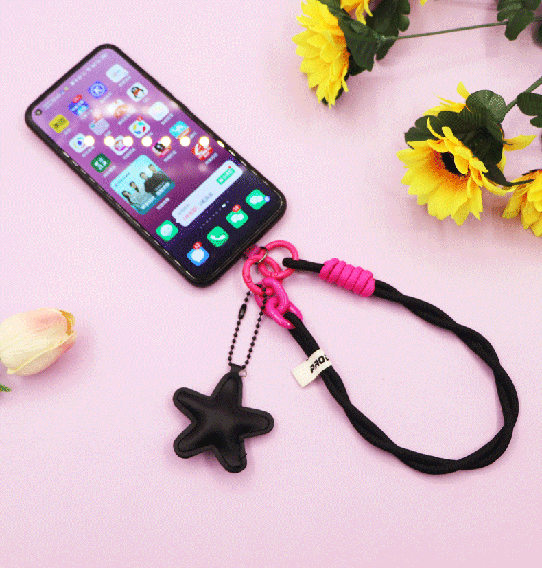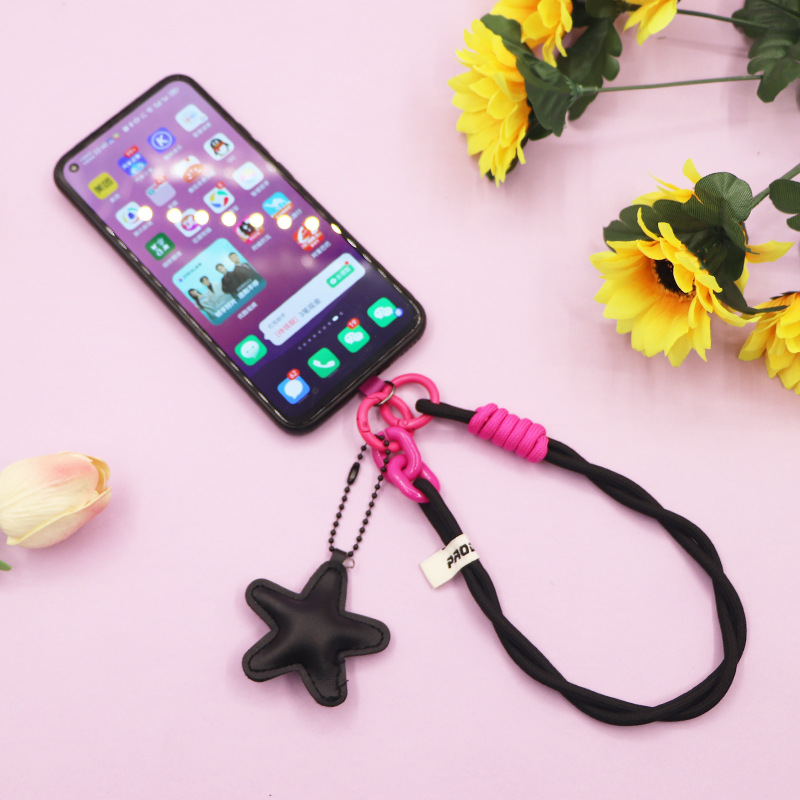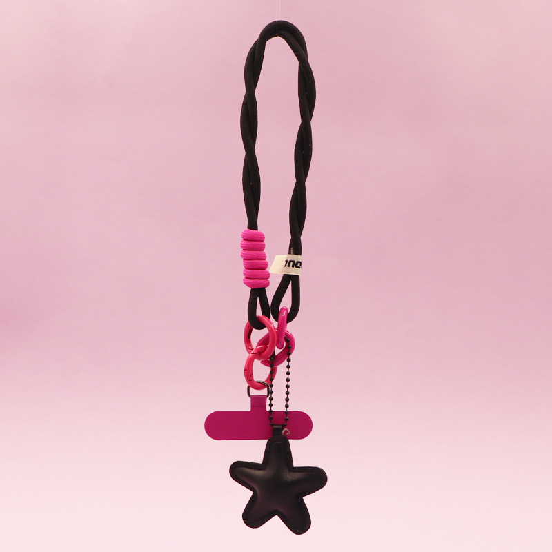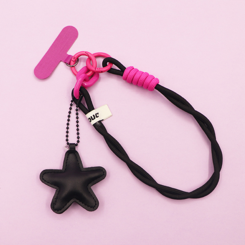 black [twist braid rope + pu five-star ornaments] mobile phone charm patch wrist rope