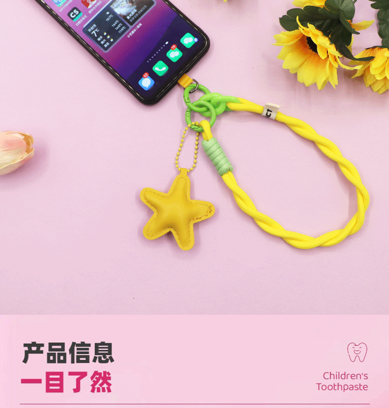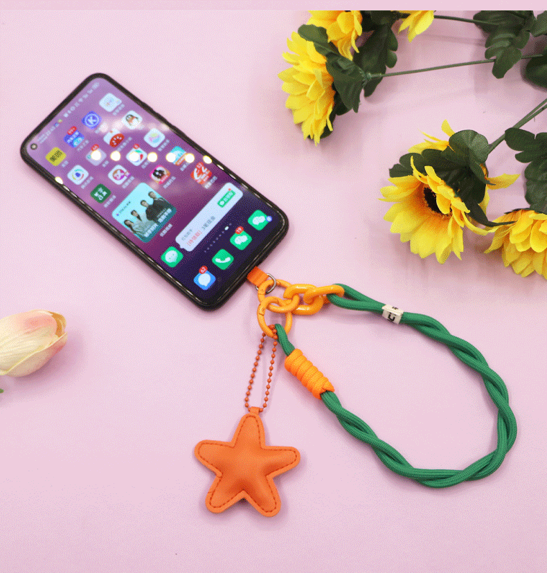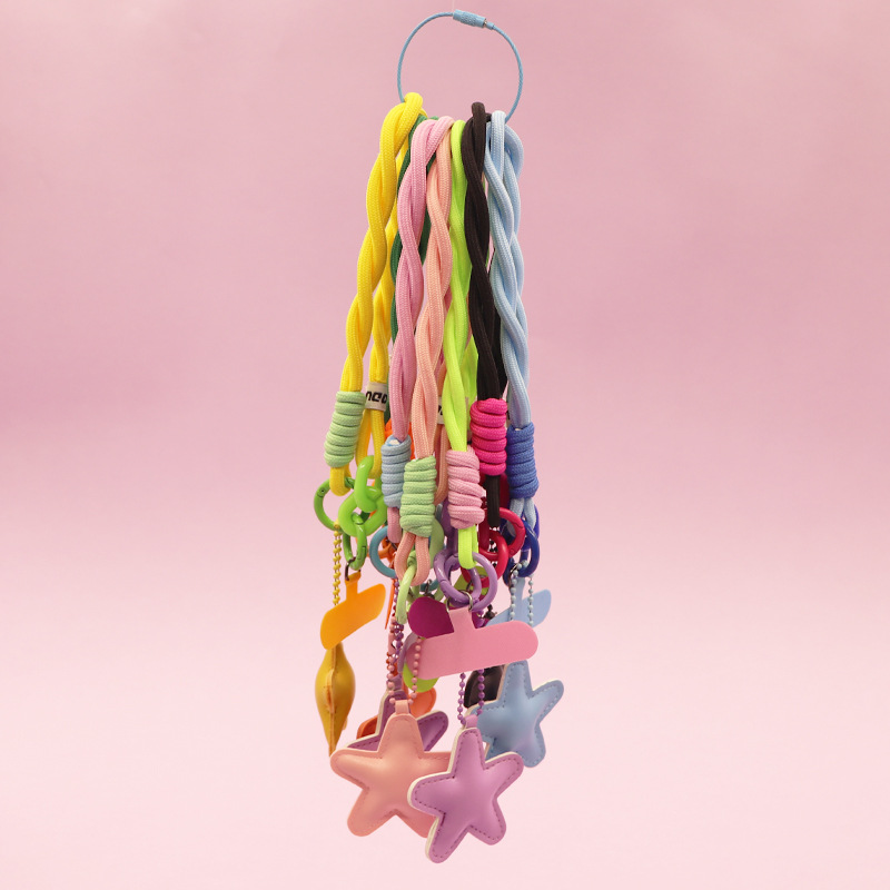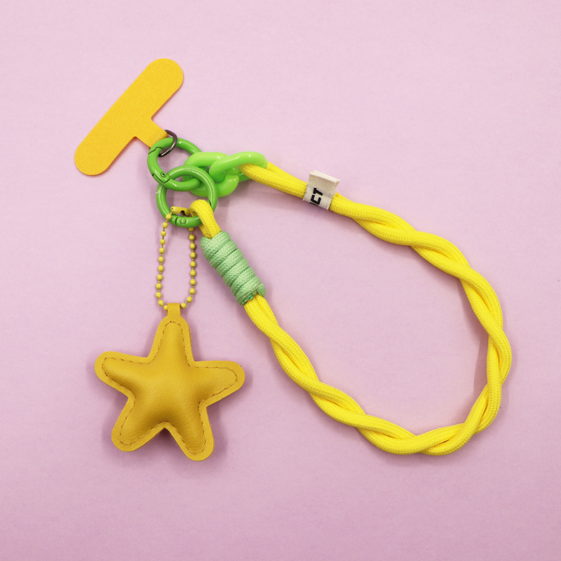 yellow [twist braid rope + pu five-star ornaments] mobile phone charm patch wrist rope