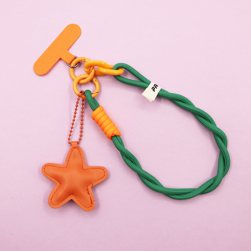 green [twist braid rope + pu five-star ornaments] mobile phone charm patch wrist rope