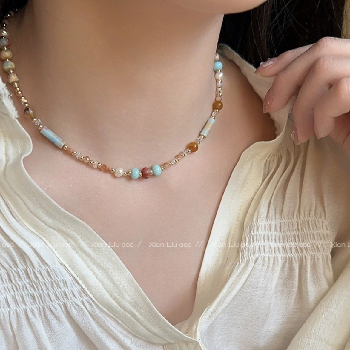 color crystal string beads necklace