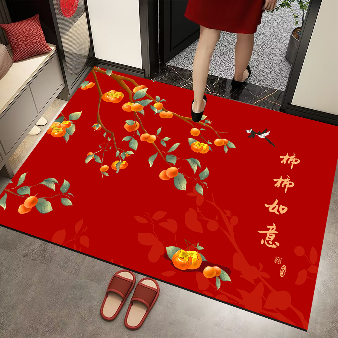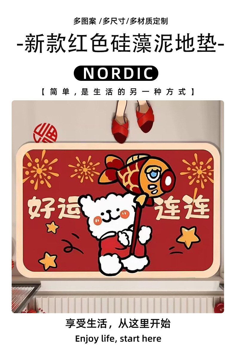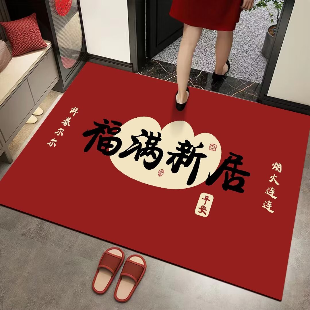 Customized Size Door Mat with Diatomite for Home Entrance, Red Door Mat for Home Use