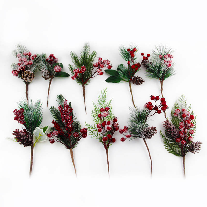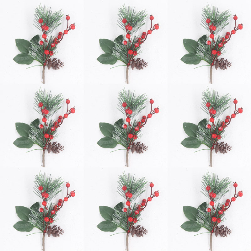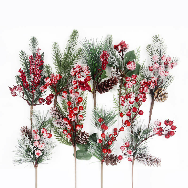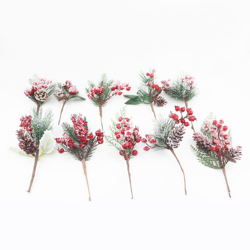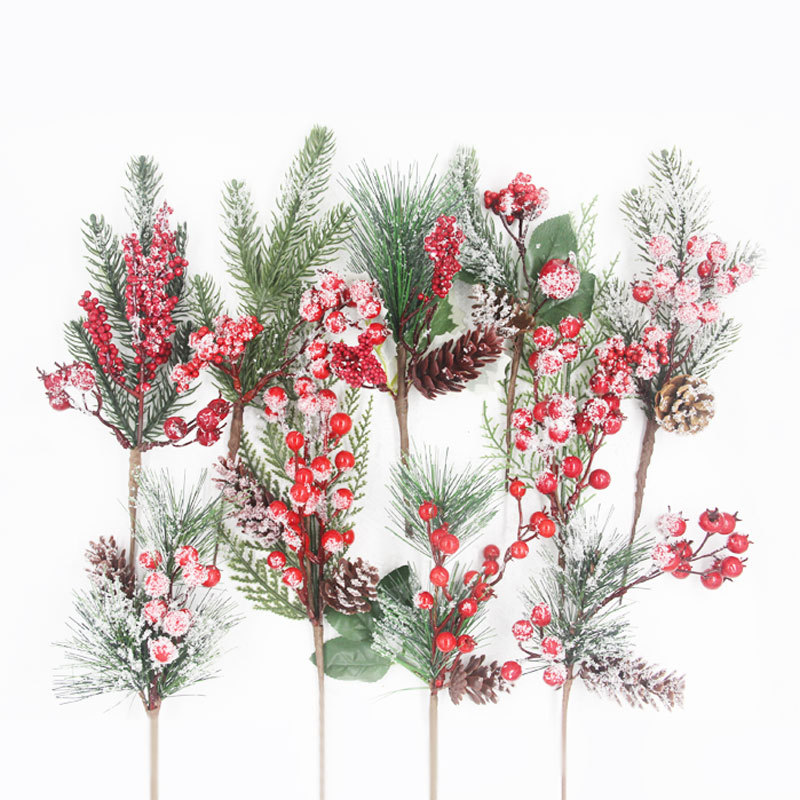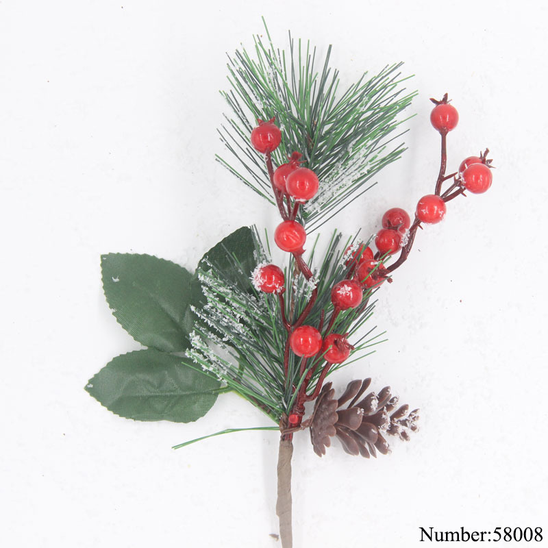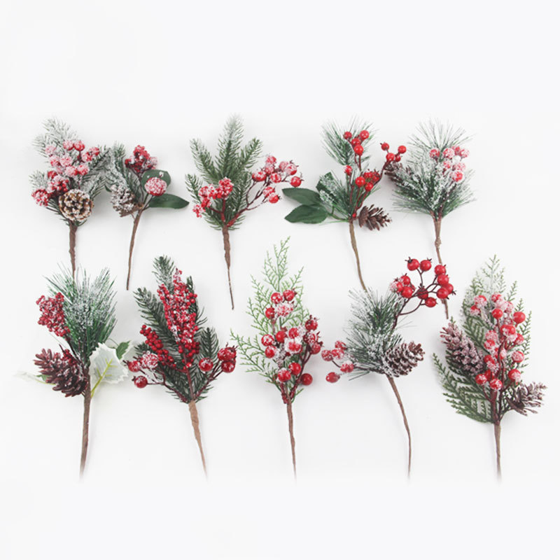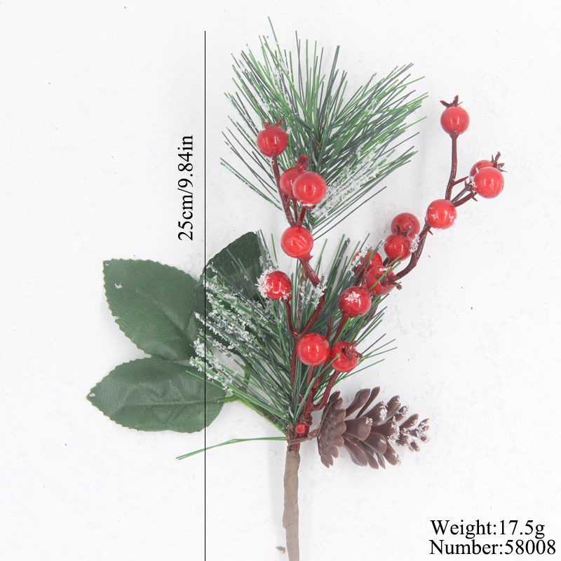 Material: PVC pine needles + foam berries + simulated snowflake powder + simulated plastic pine cones + fabric leaves