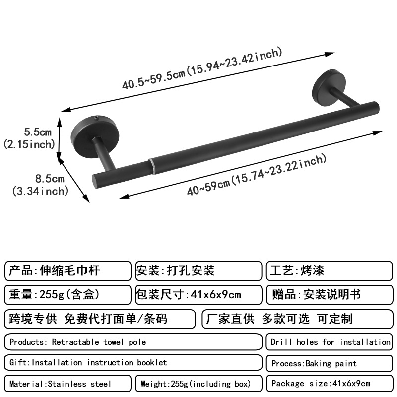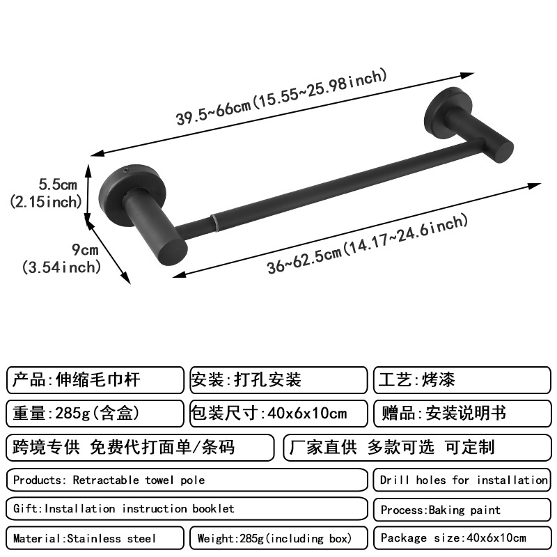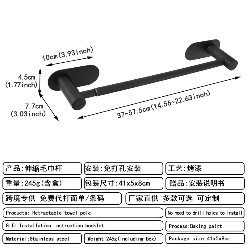 [exclusive for cross-border] perforated round tube telescopic towel bar black b type