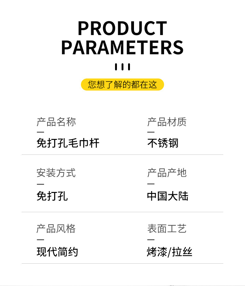 [exclusive for cross-border] punch-free single-layer towel rack silver