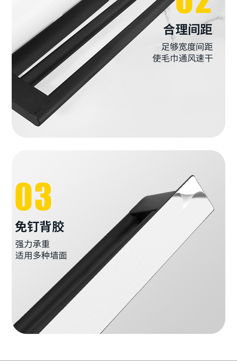 [exclusive for cross-border] punch-free double-layer towel rack black