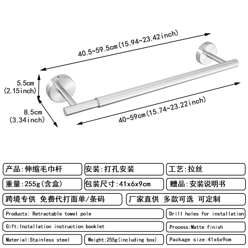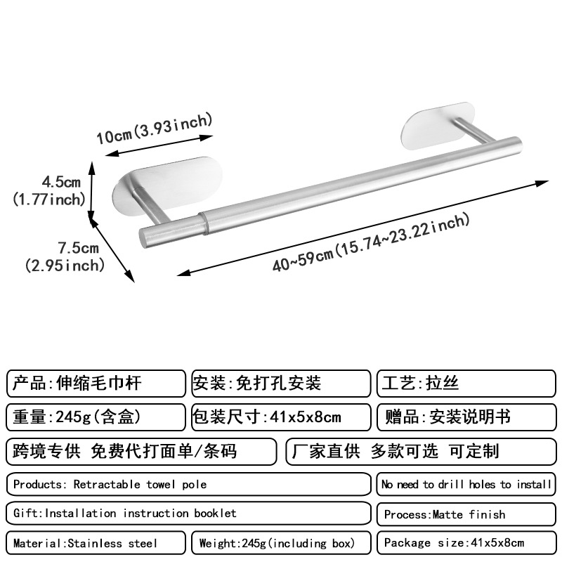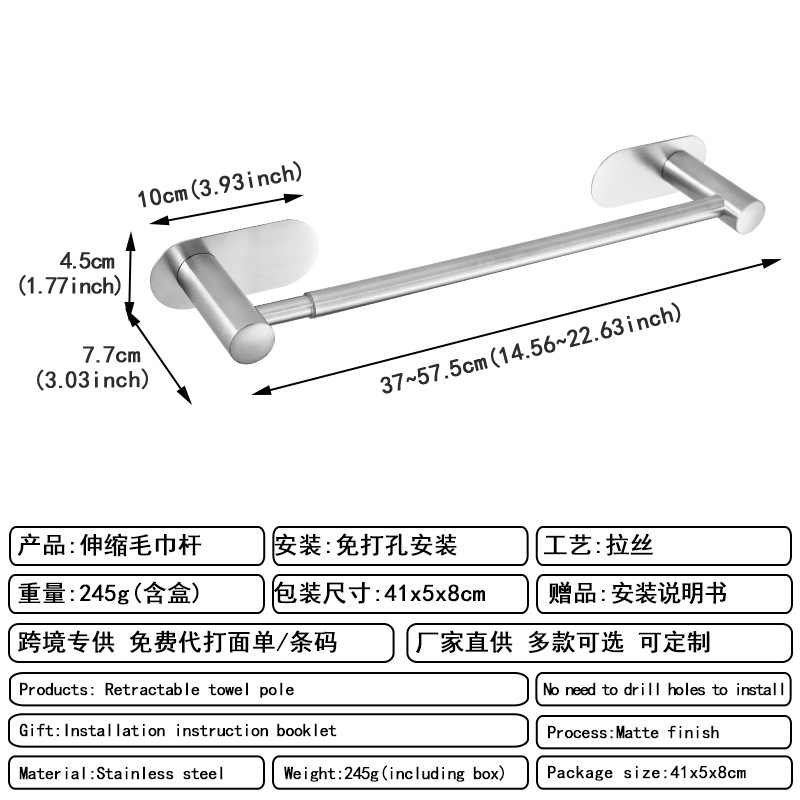 [exclusive for cross-border] perforated round tube telescopic towel bar silver type a