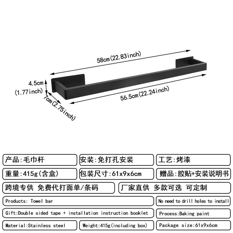 [exclusive for cross-border] punch-free single-layer towel rack black