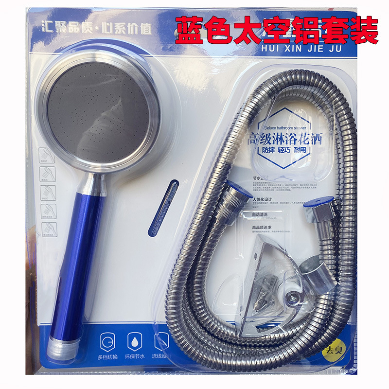 blue alumimum shower head blister set