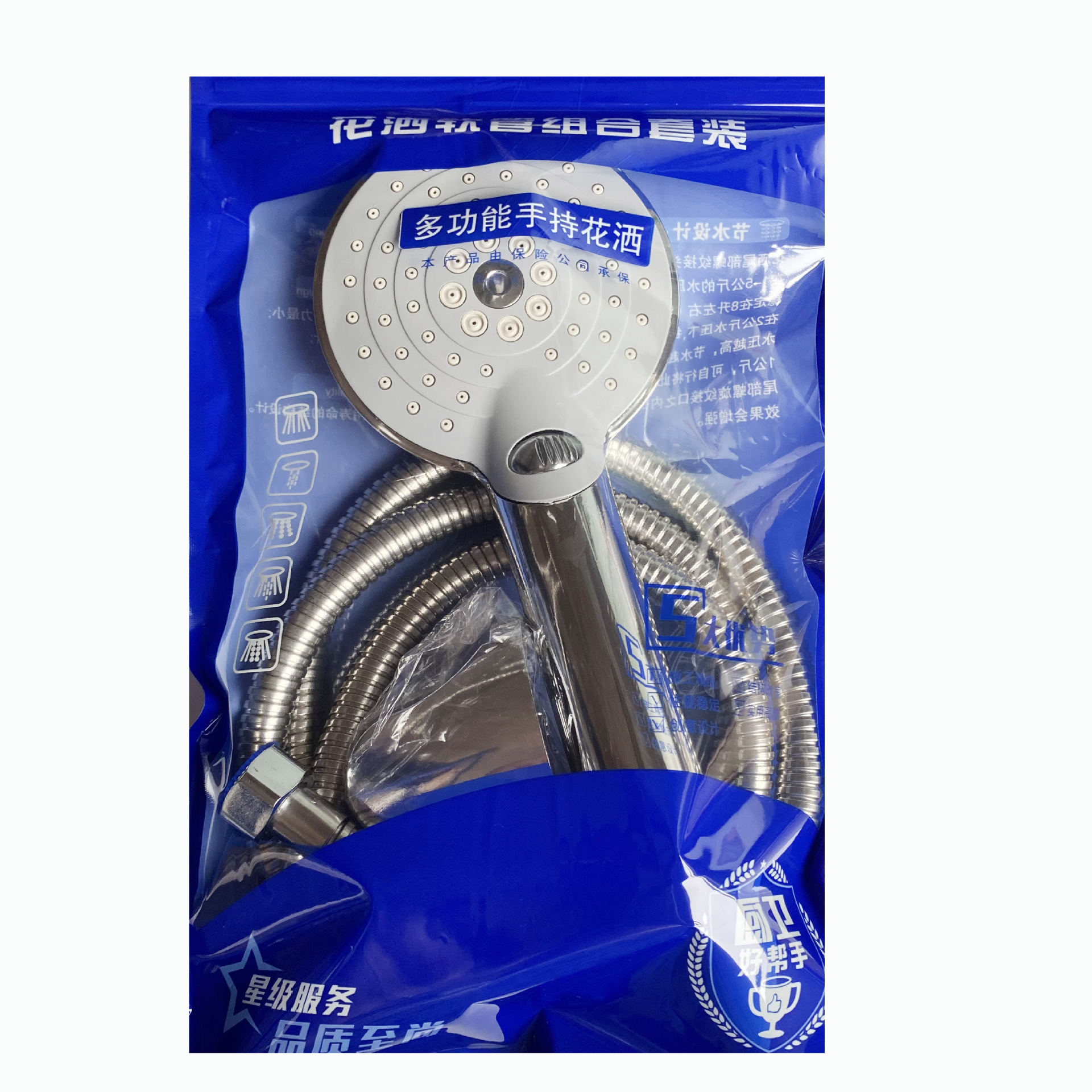 transparent bag: 300-hole shower +1.5 m double flexible hose + yuan throne