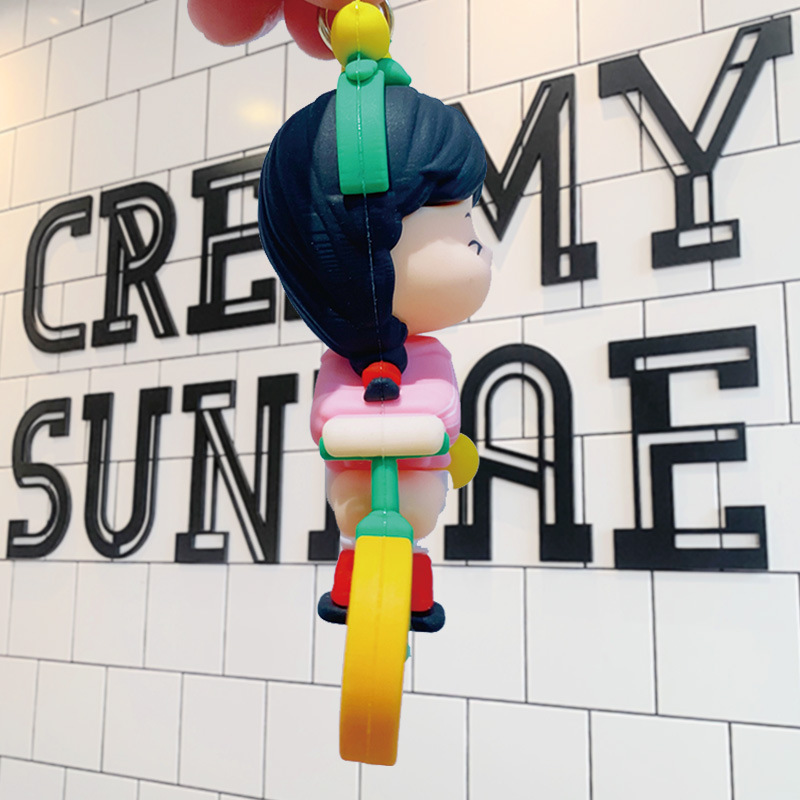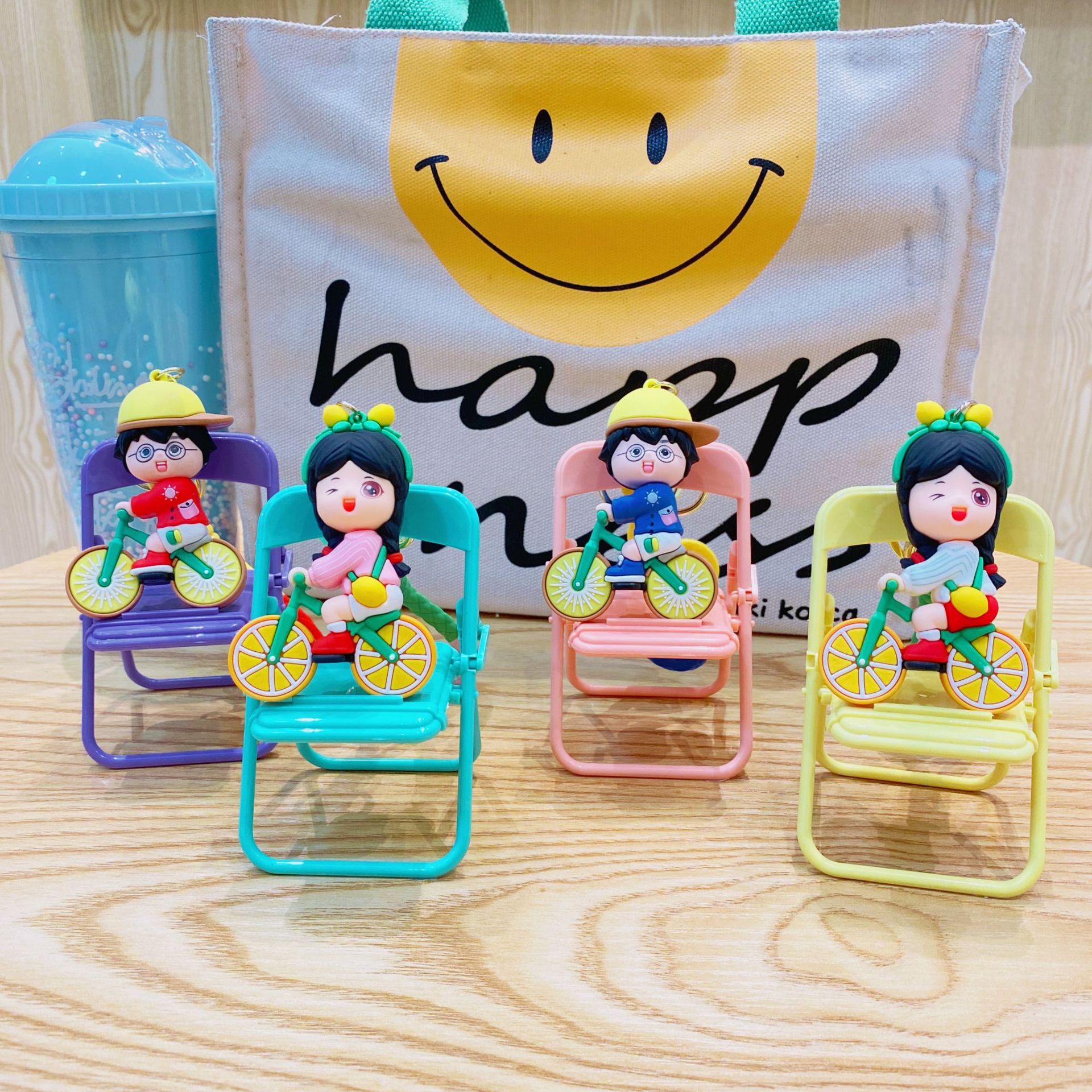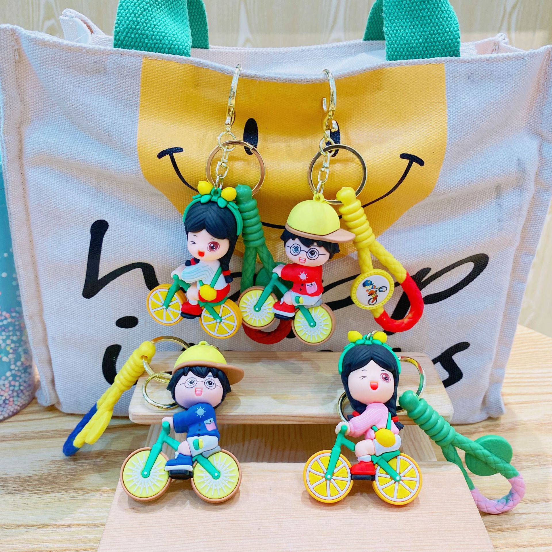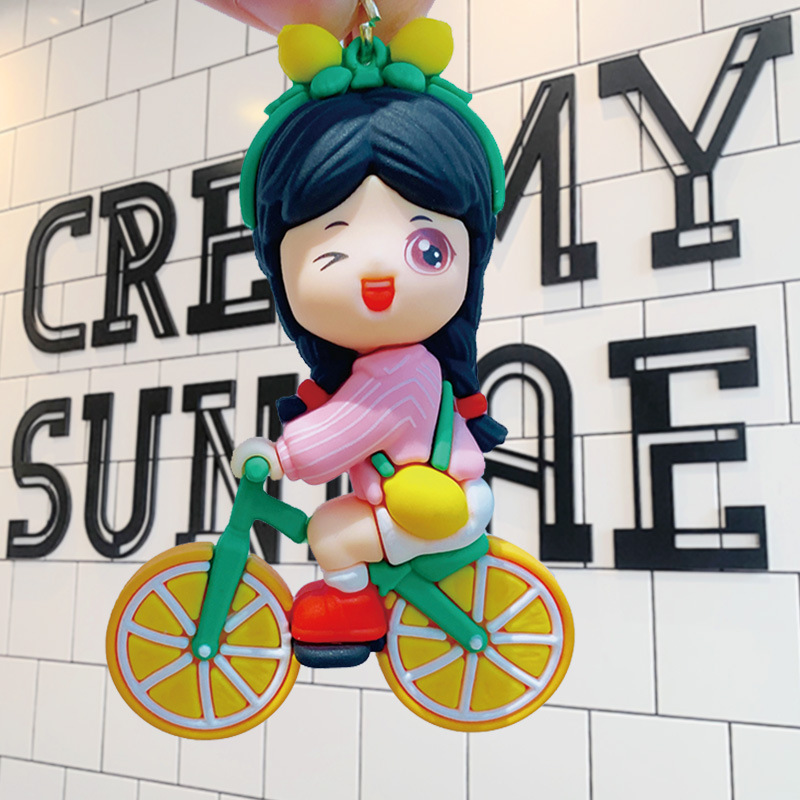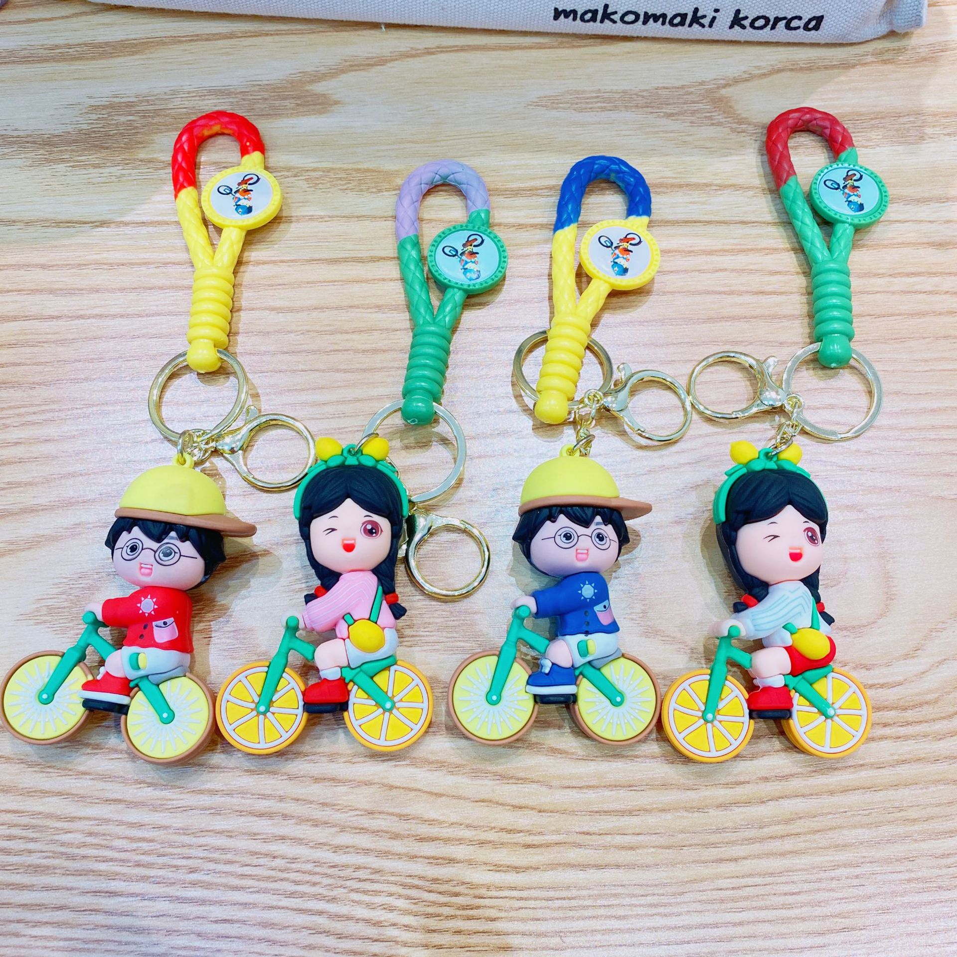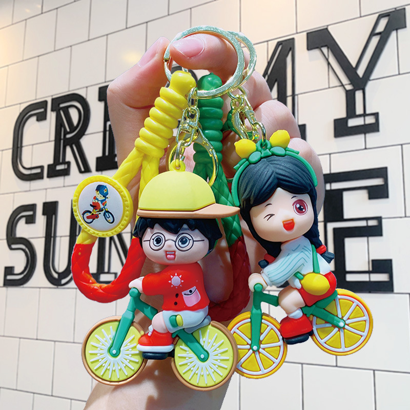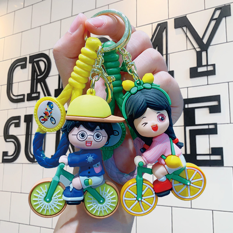 orange bicycle couple-blue clothing