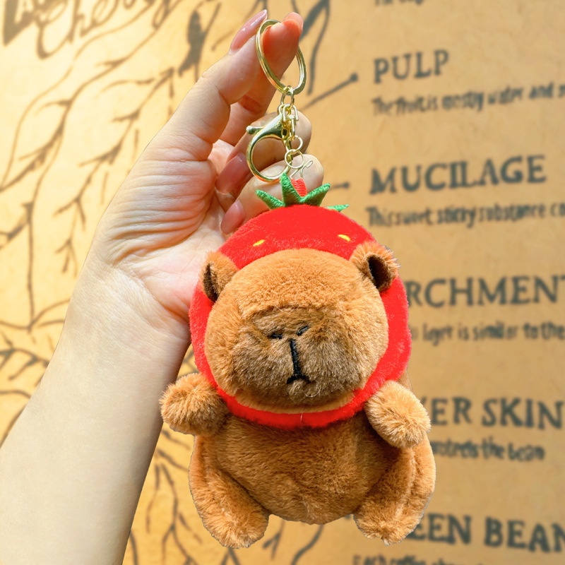 plush apple hood capybara sitting position
