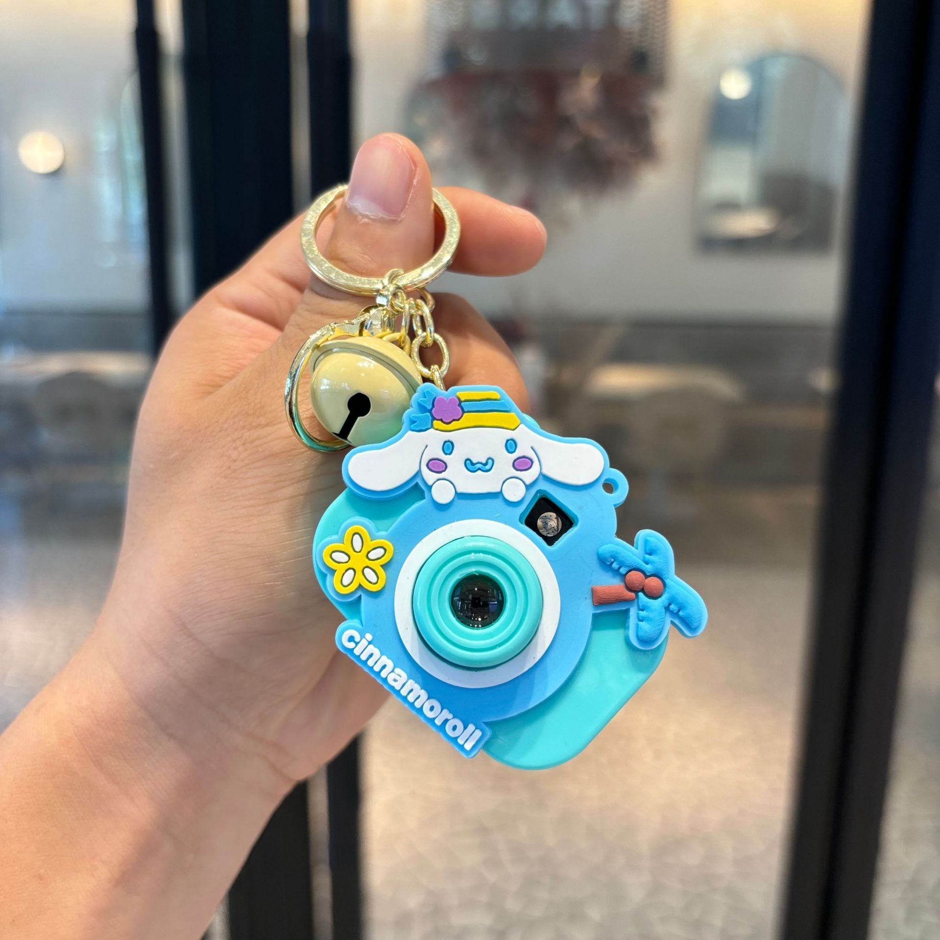 projection camera keychain-cherry blossom rabbit blue
