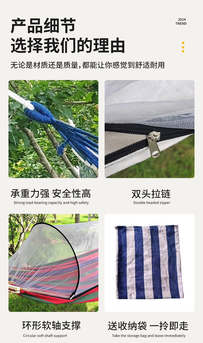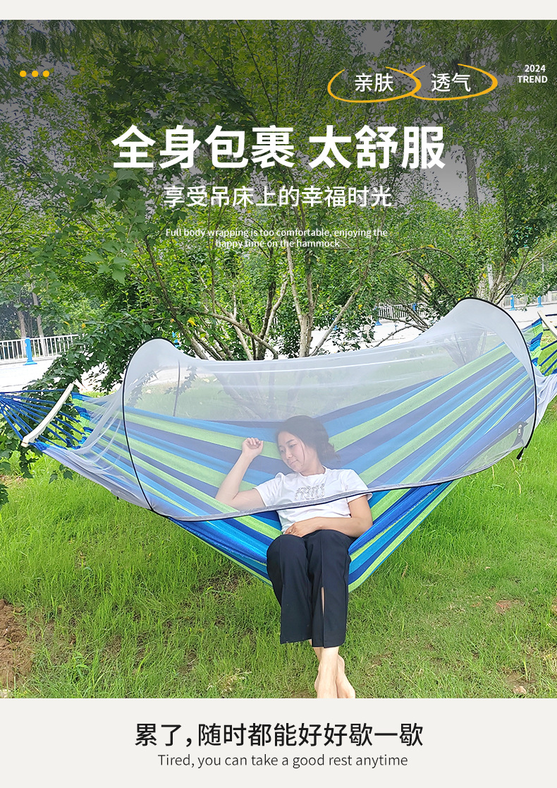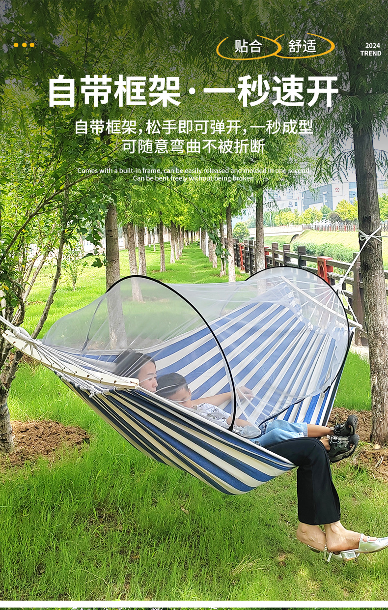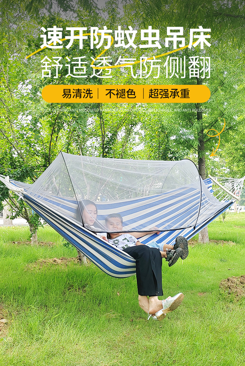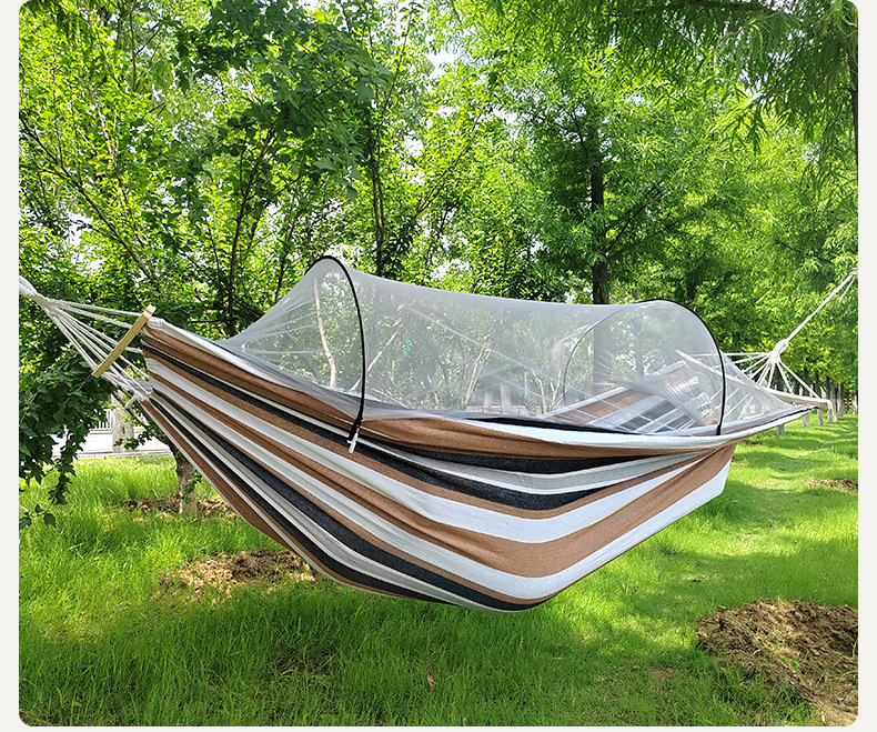 anti-rollover mosquito net hammock 220*150 khaki stripe