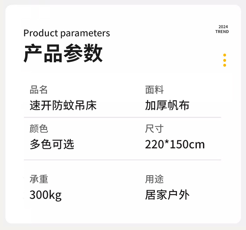 anti-rollover mosquito net hammock 220*150 creamy-white