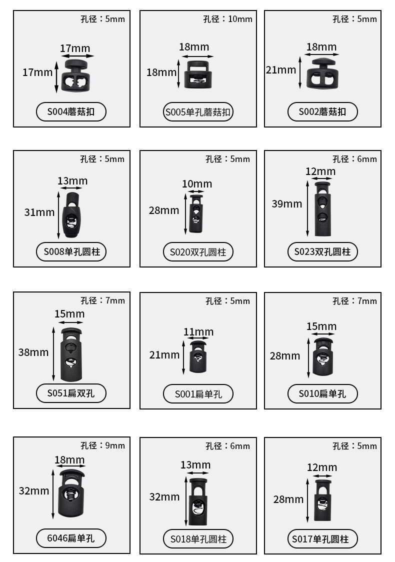 s005 single hole mushroom buckle