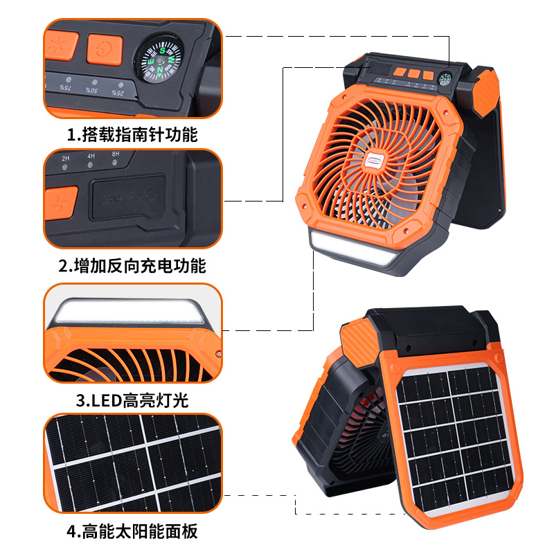 Solar-powered outdoor fan camping USB charging strong wind portable cooling timer fishing camping tent fan Solar fan Fishing fan Tent fan Camping fan Outdoor fan Mini fan Compass fan