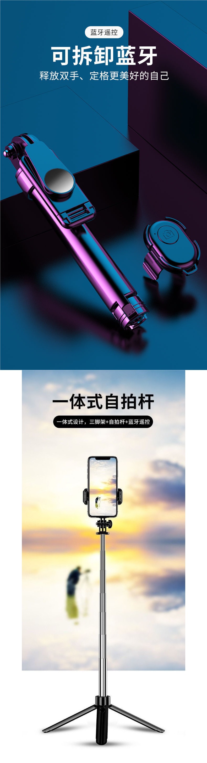 light blue [upgraded version] integrated + selfie remote + horizontal and vertical shooting 0.7 m