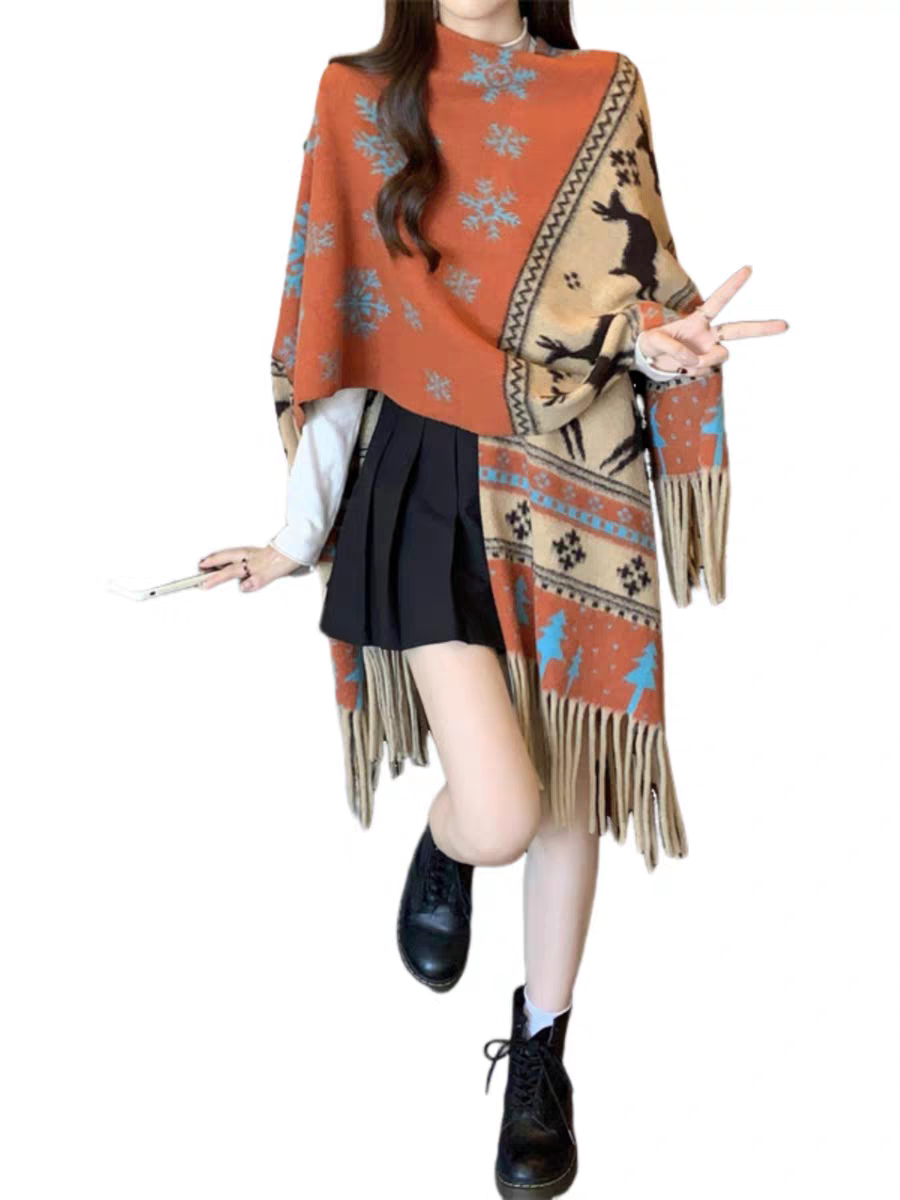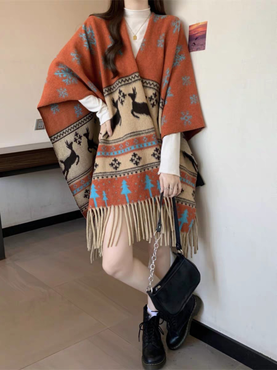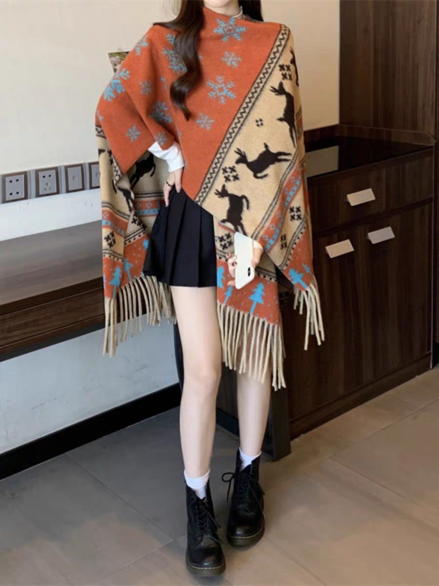 cross-border scarf wholesale e-commerce live supply chain supply snowflake deer cashmere split shawl