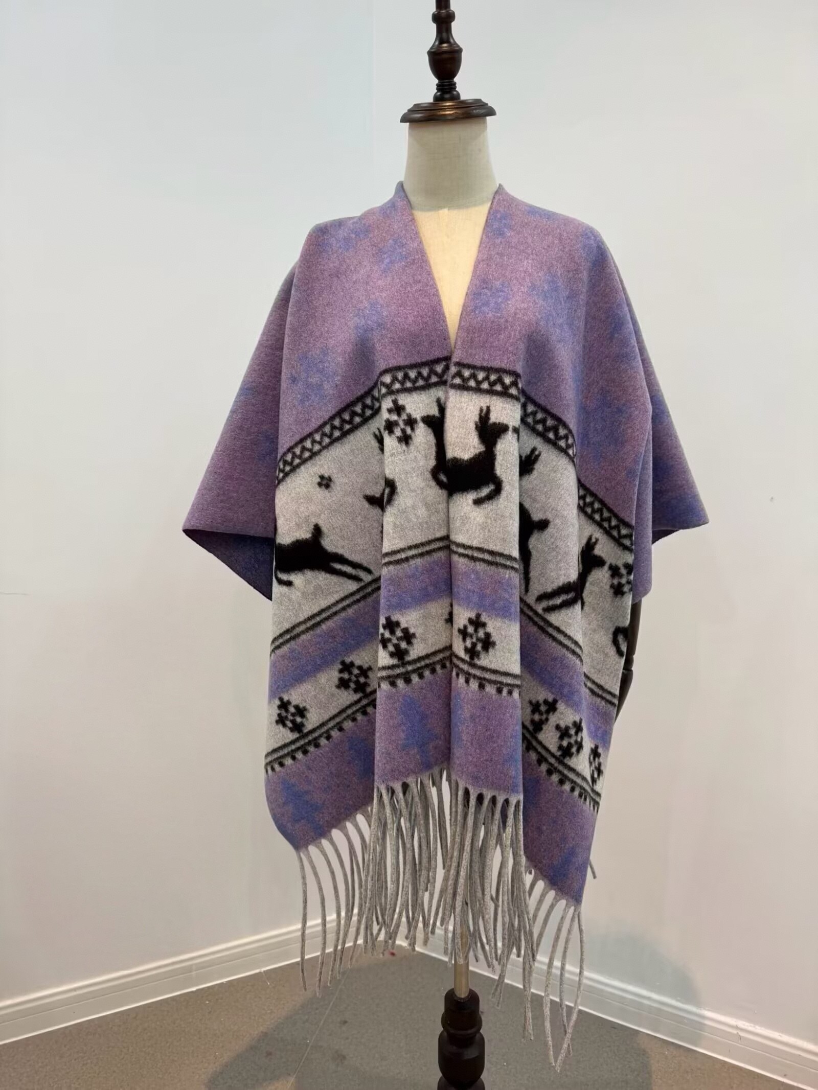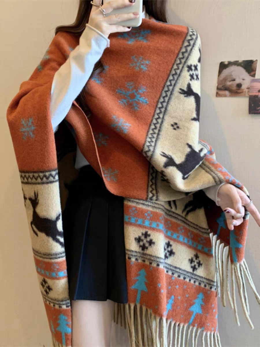 Snowflake Deer Faux Cashmere Slit Scarf Weight: 500 grams