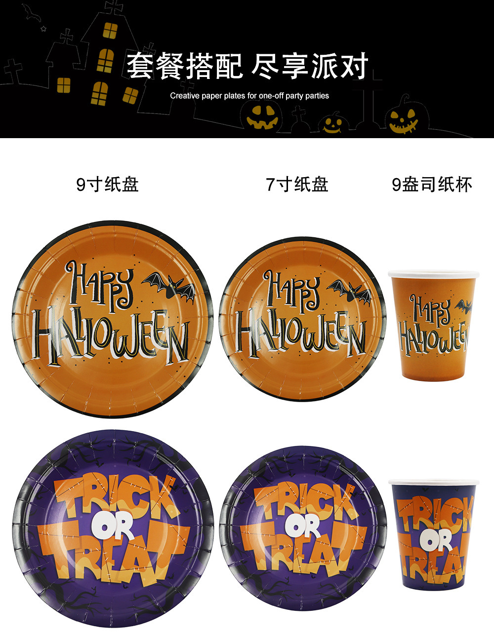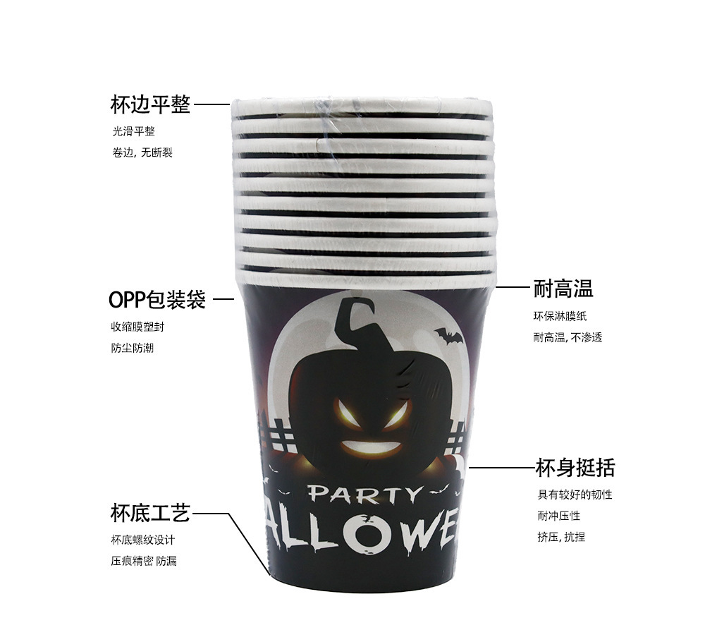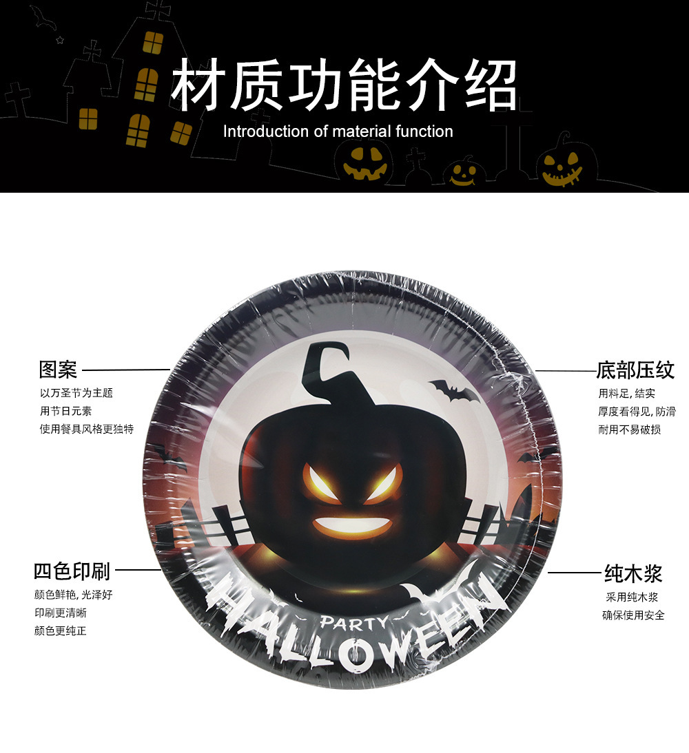 cross-border halloween theme party decoration pumpkin paper cup 7-inch 9-inch paper pallet paper towel holiday tableware suit