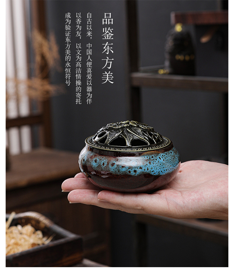 ice crack incense burner [with thickened mesh cover] + fireproof cotton + 7.5cm large size__cellular-network