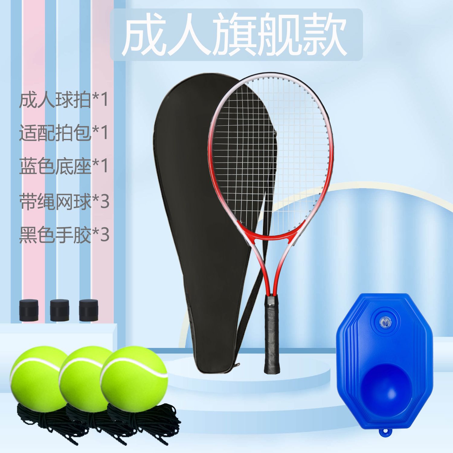 [adult flagship-red] adult racket + ball bag + base + high-elastic tennis * 3 + grip tape * 3