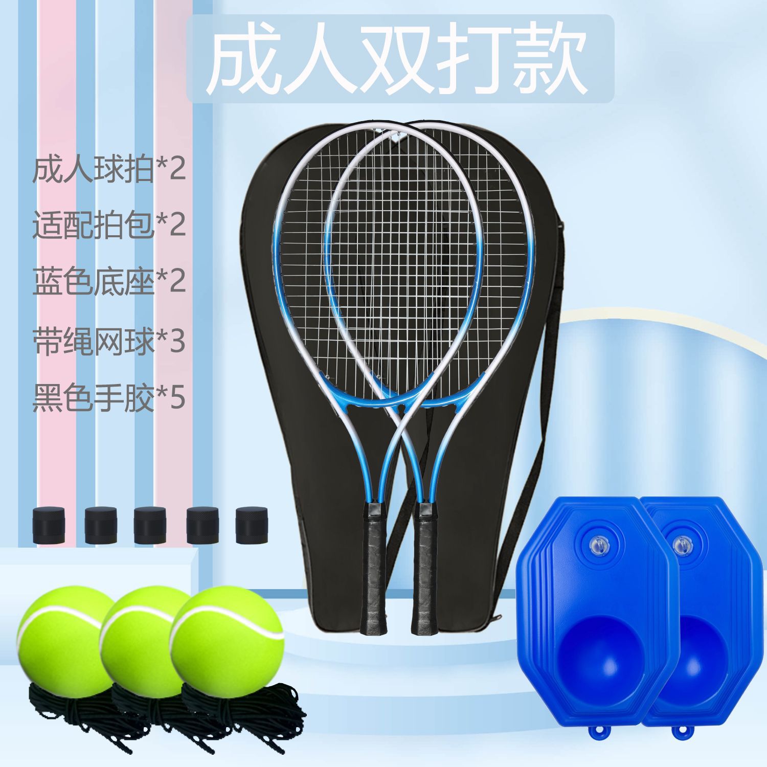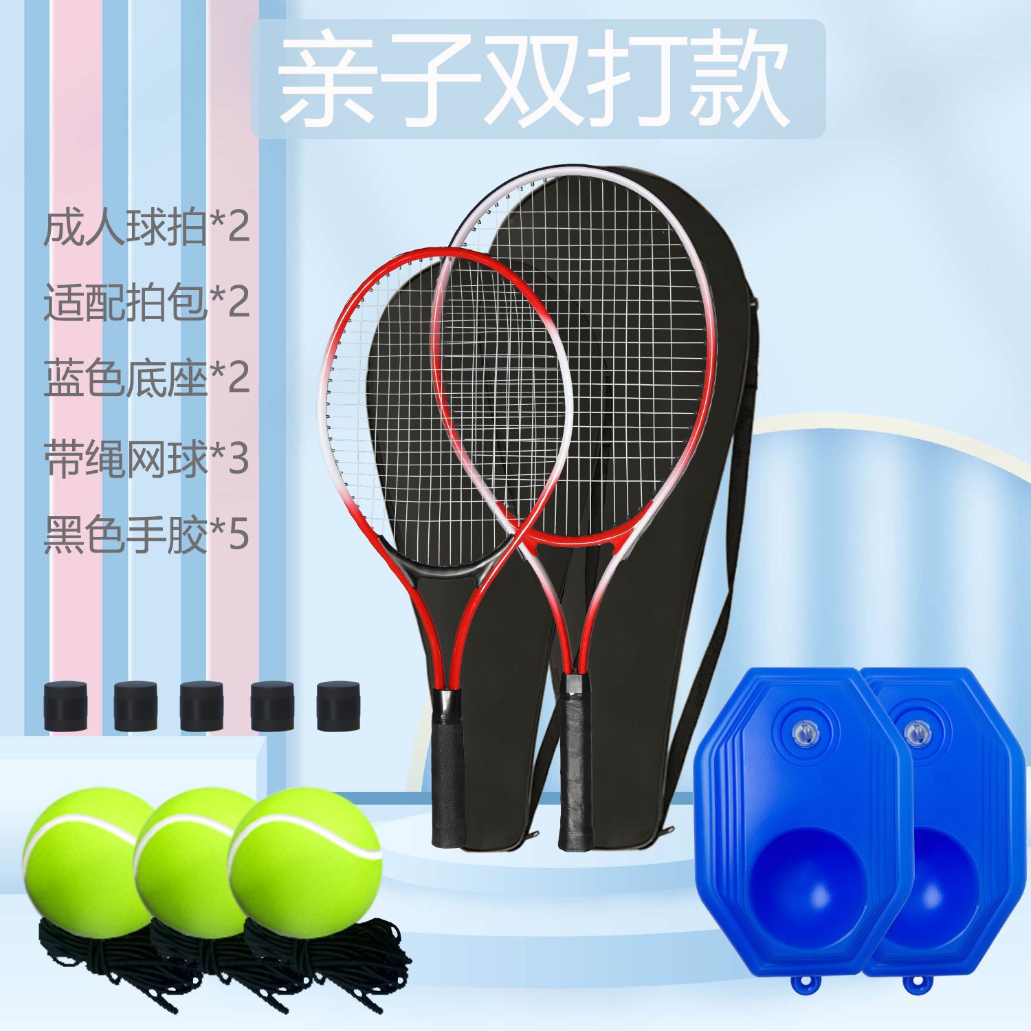[parent-child doubles style-blue] parent-child racket * 2 + ball bag * 2 + base * 2 + high-elastic tennis * 3 + grip tape * 5