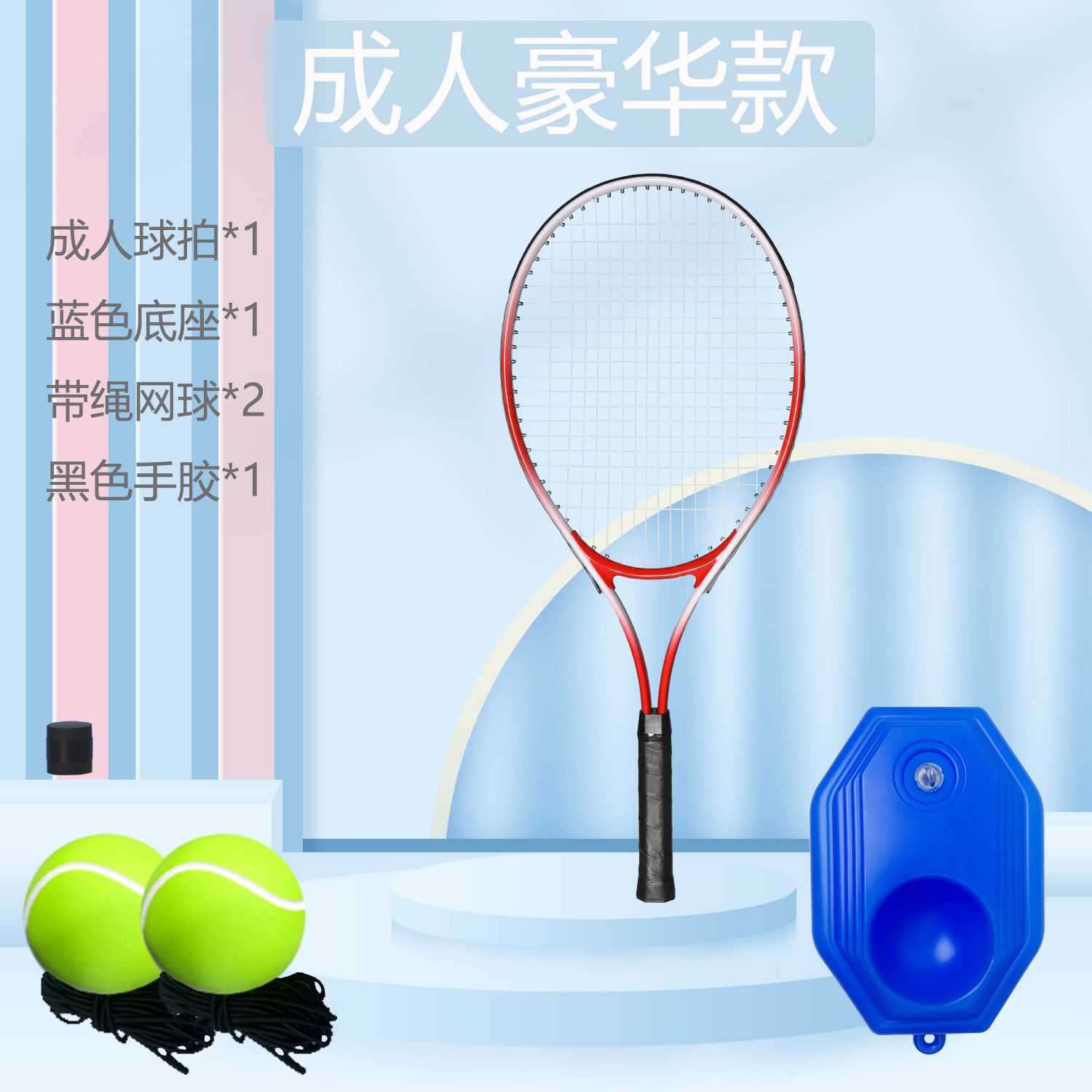 [adult luxury-red] adult racket + base + high-elastic tennis * 2 + grip tape * 1