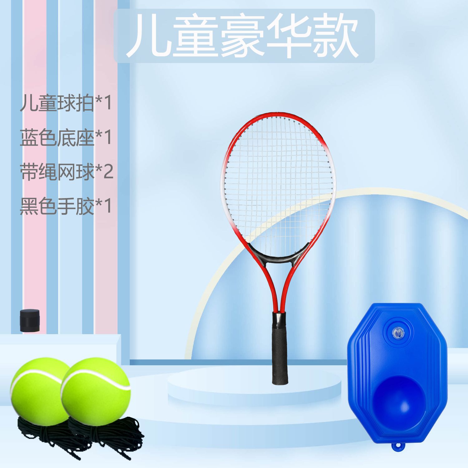 [children's flagship-blue] children's racket + ball bag + base + high-elastic tennis * 3 + grip tape * 3