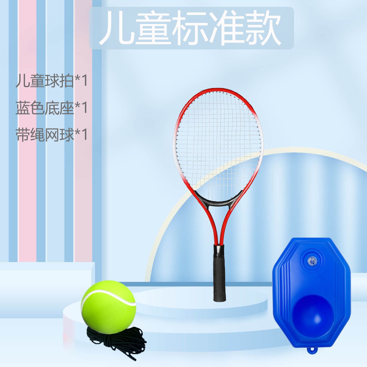 [children's standard model-blue] children's racket + base + high-elastic tennis