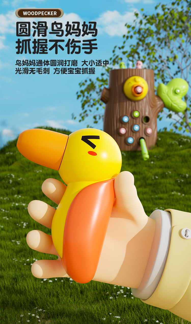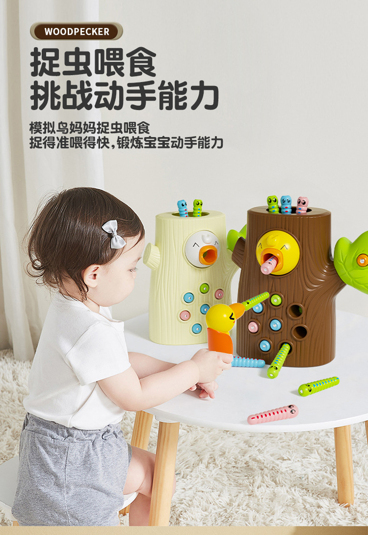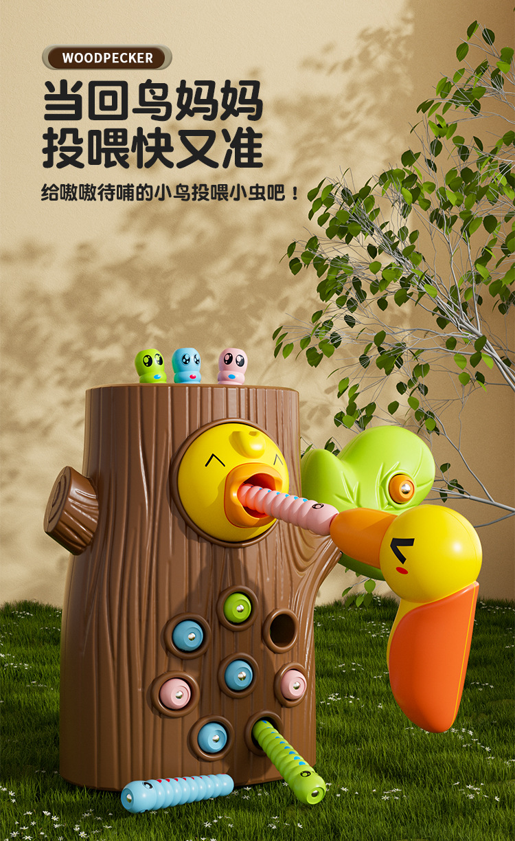 large [brown] stump +9 worms 2 woodpecker (e-commerce box)