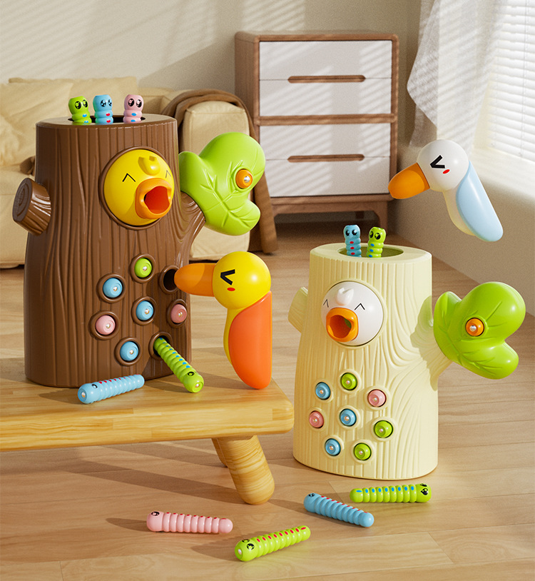 large [brown] stump +9 worms 1 woodpecker (e-commerce box)
