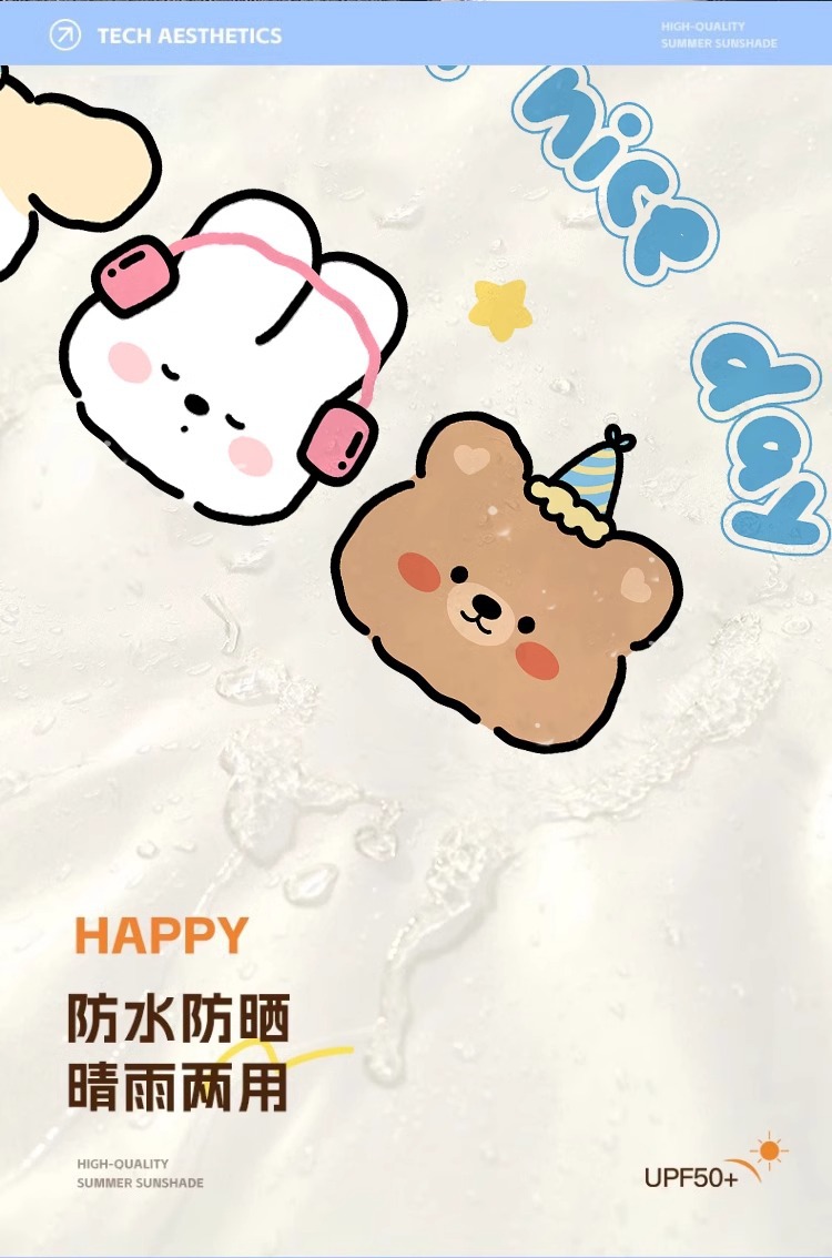 [summer all-inclusive cloak + high-end laser pearlescent film + sun protection and heat insulation + storage horn button] rice bottom lucky bear