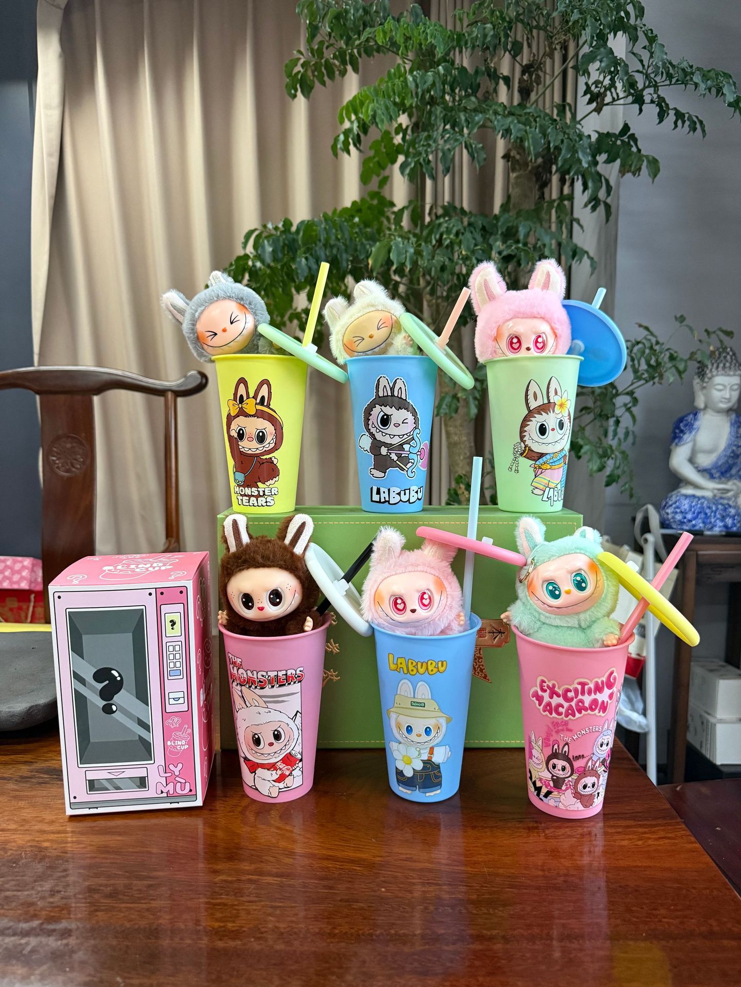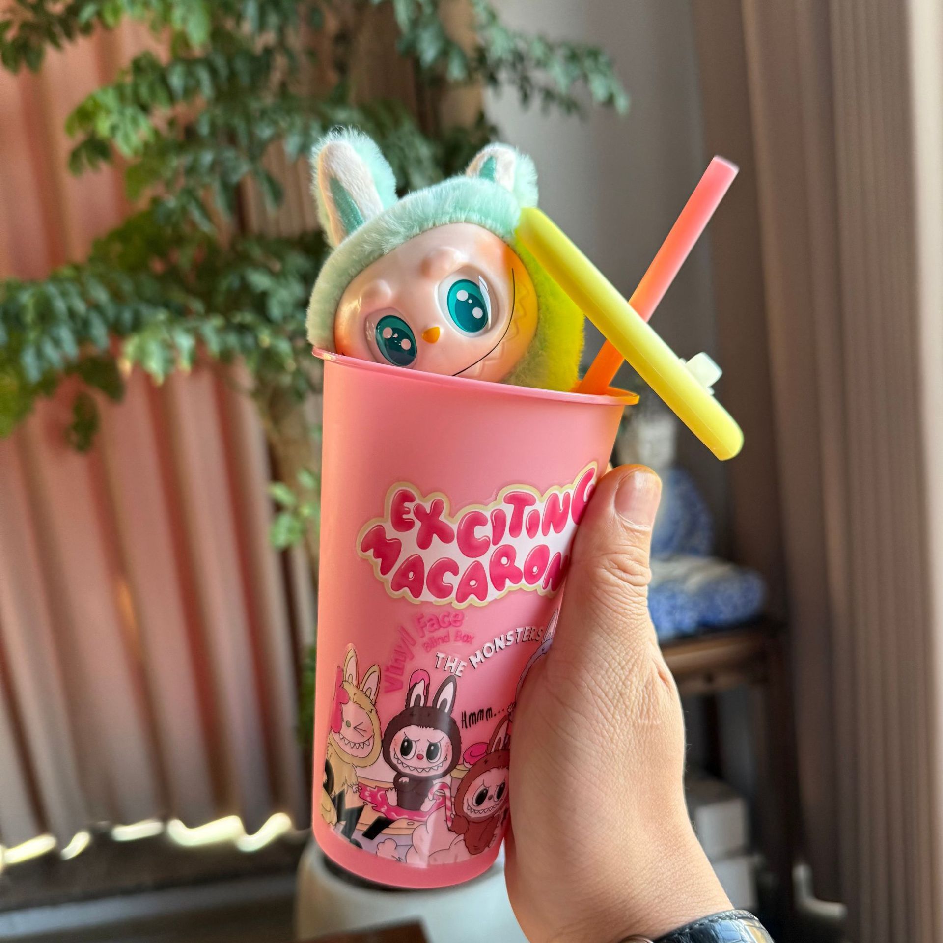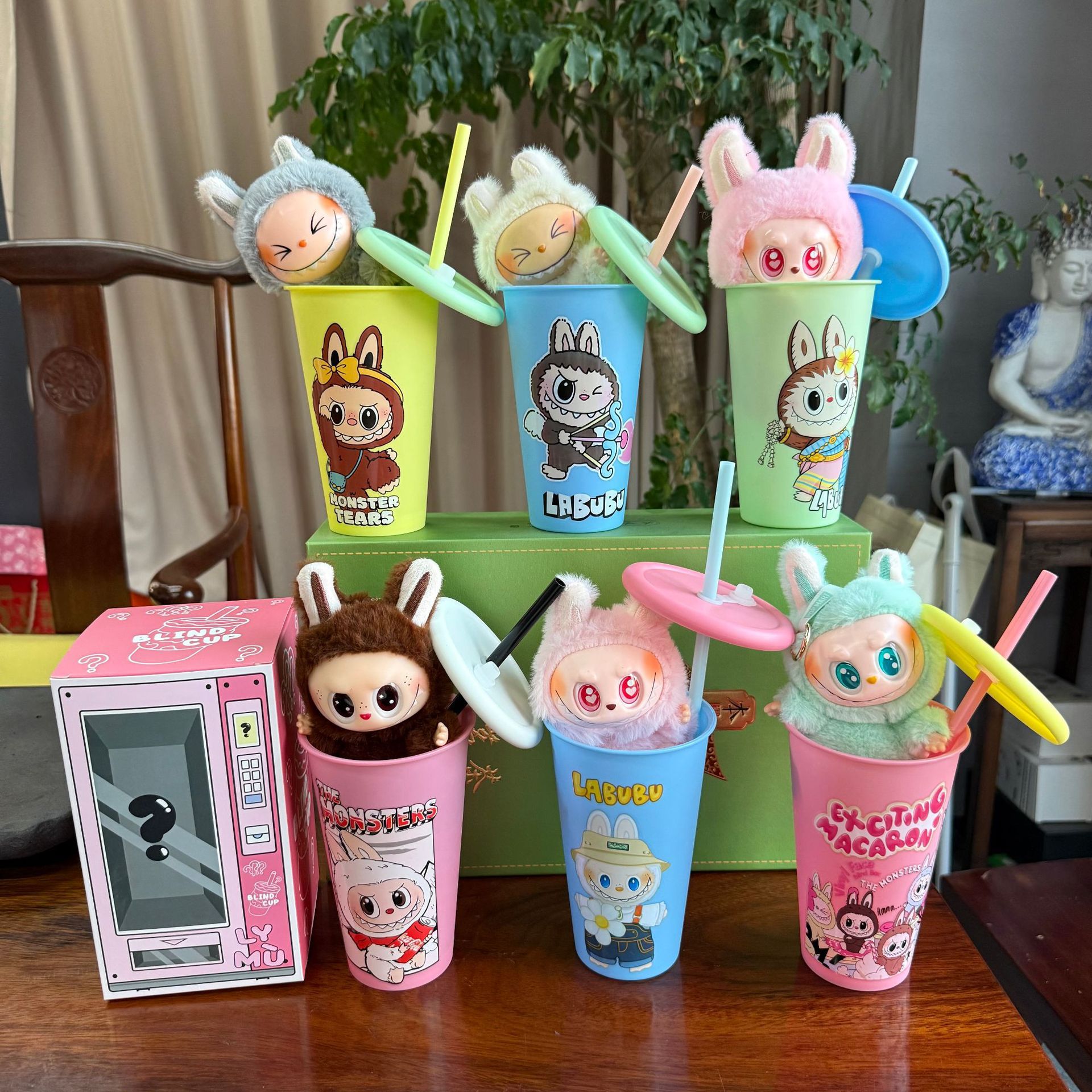 new automobiles curtain cloth pvc doll labubu pop mart toy macaron blind box cup set