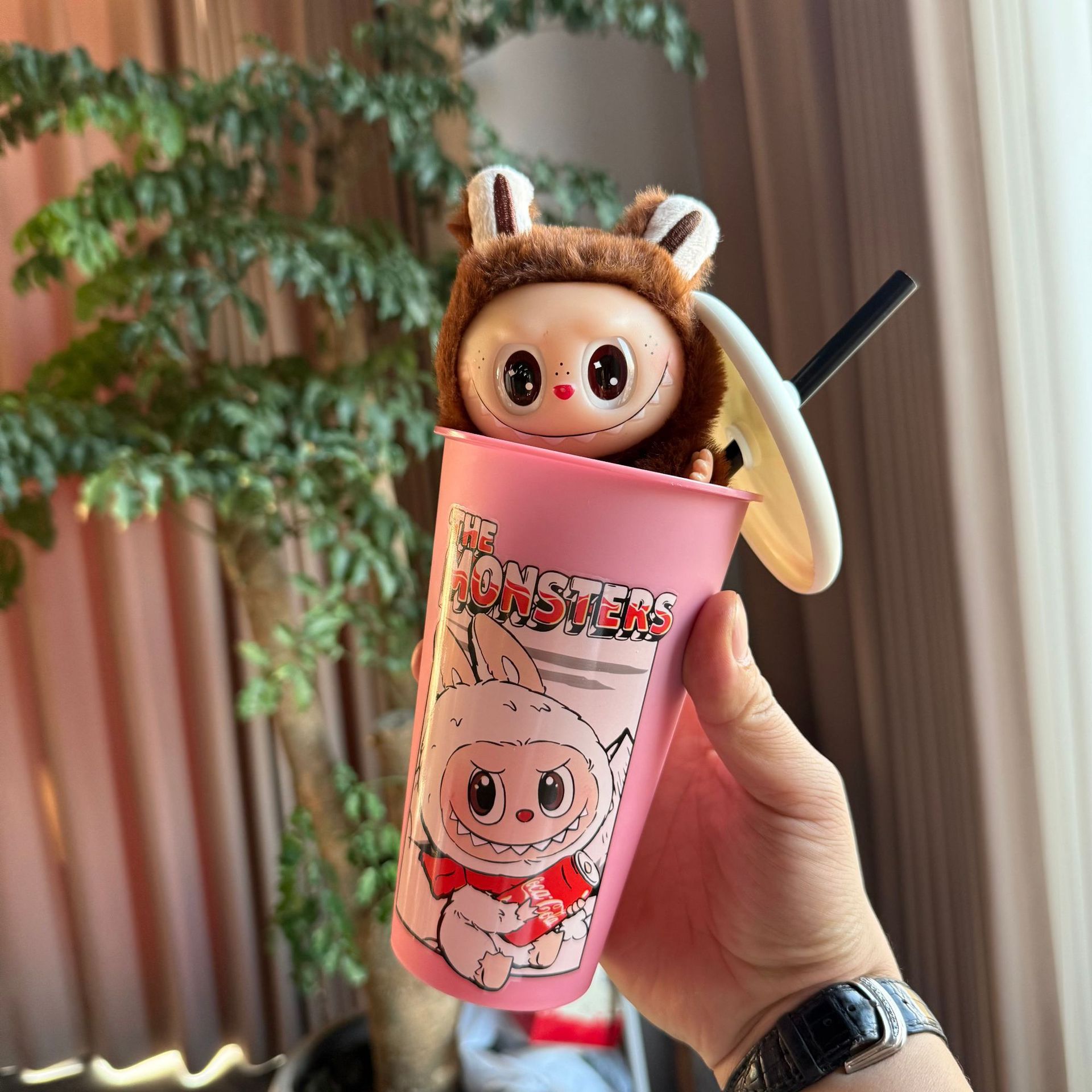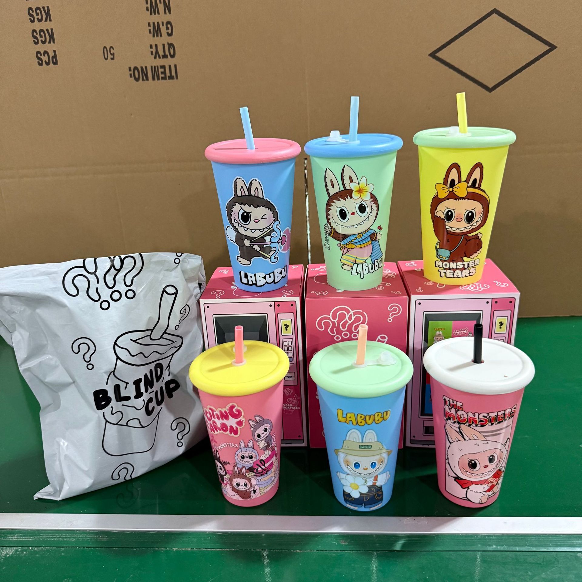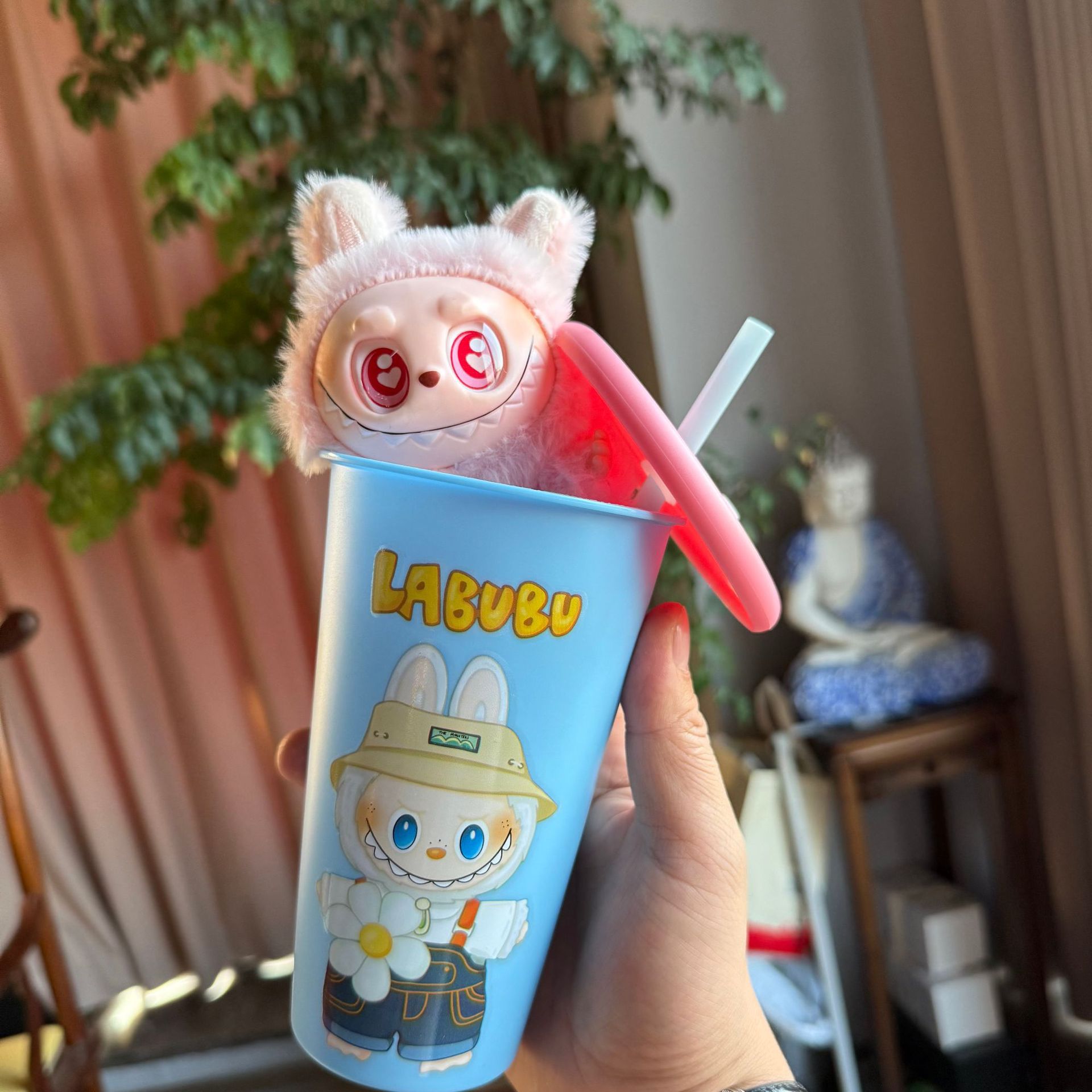 new automobiles curtain cloth pvc doll labubu pop mart toy macaron blind box cup set