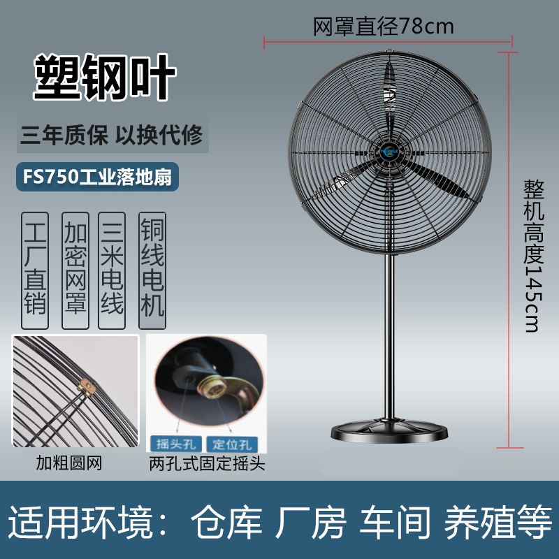 750 model [floor fan] plastic steel blade (copper motor + warranty for 3 years)
