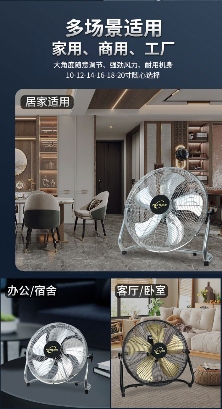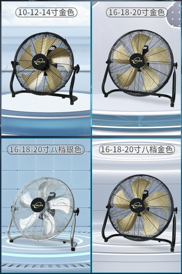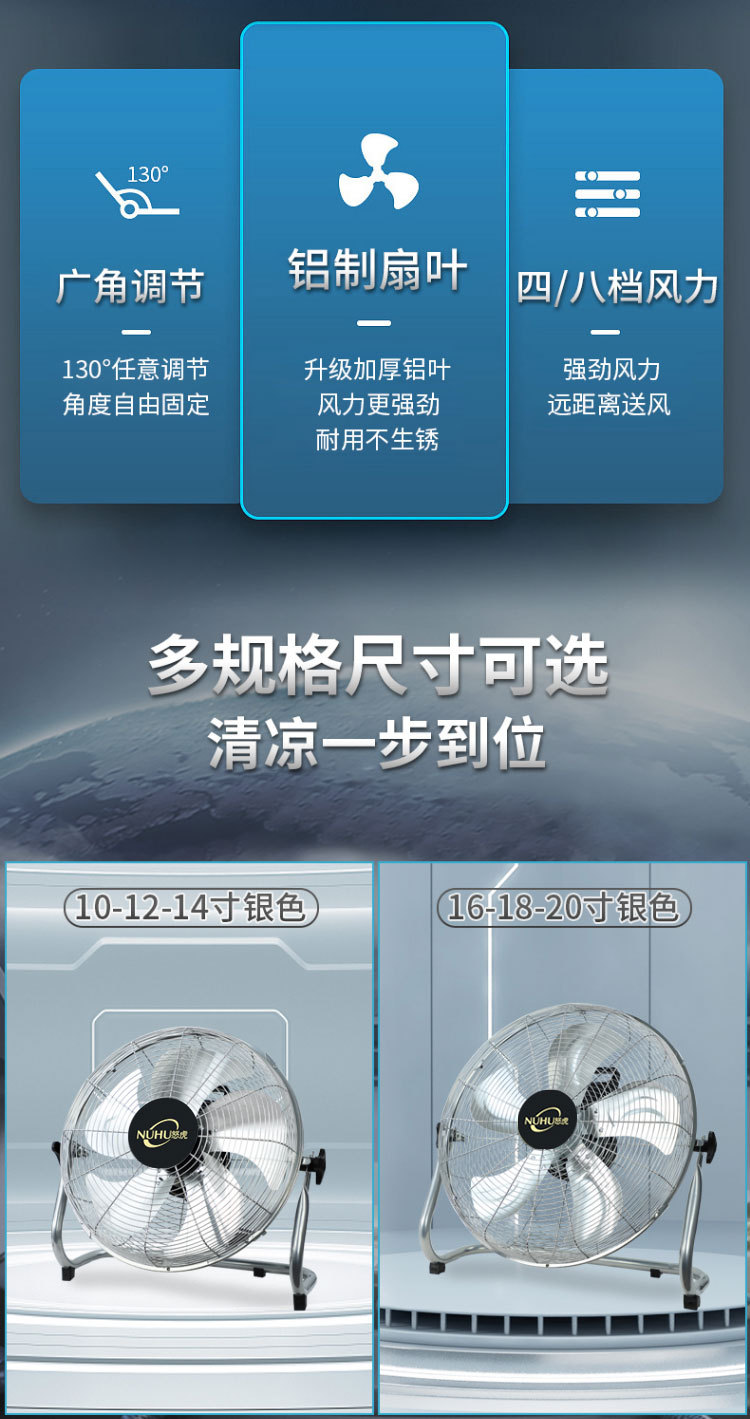 16-inch silver floor fan [five aluminum leaves strong strong wind eight speed control network lengthened cable]]