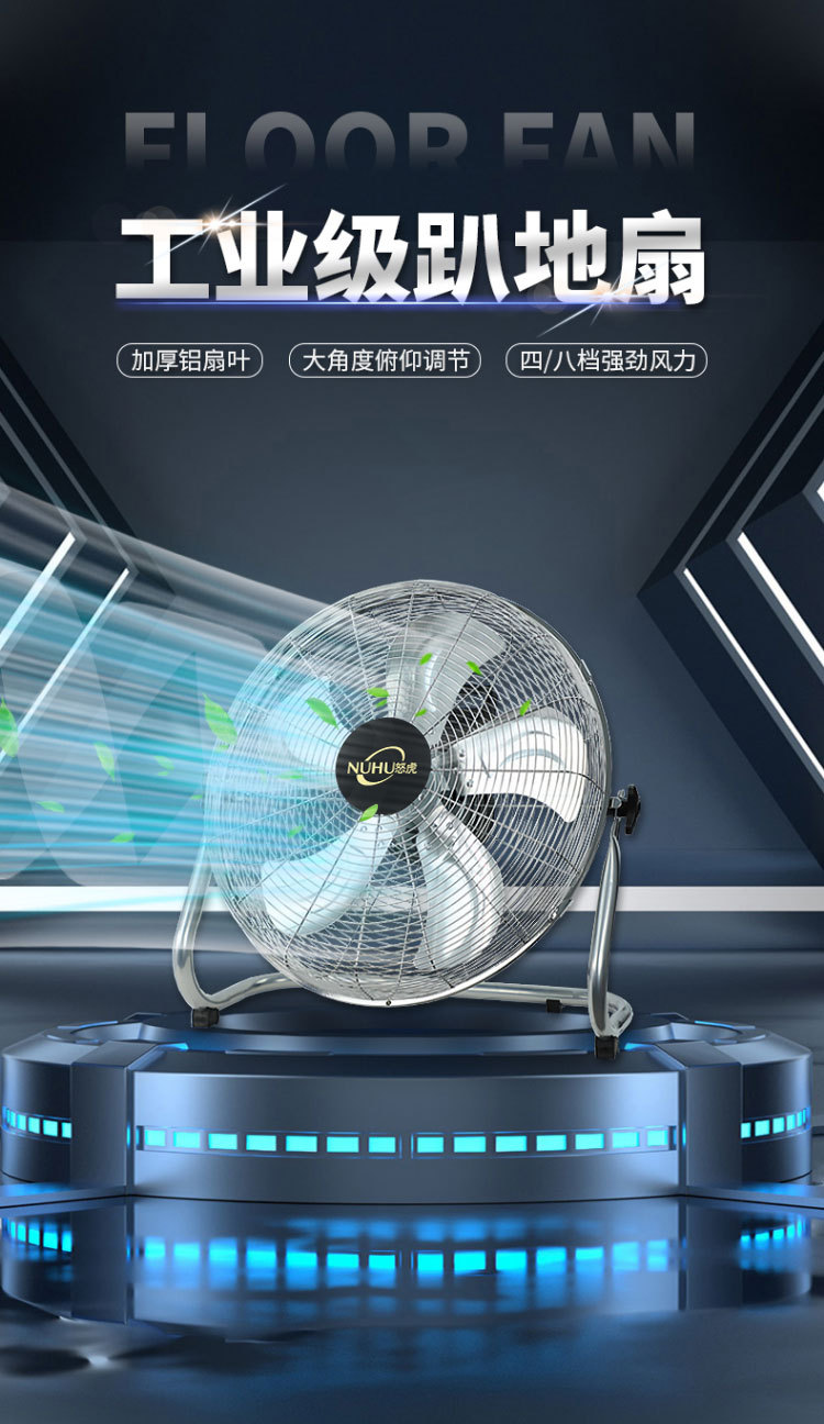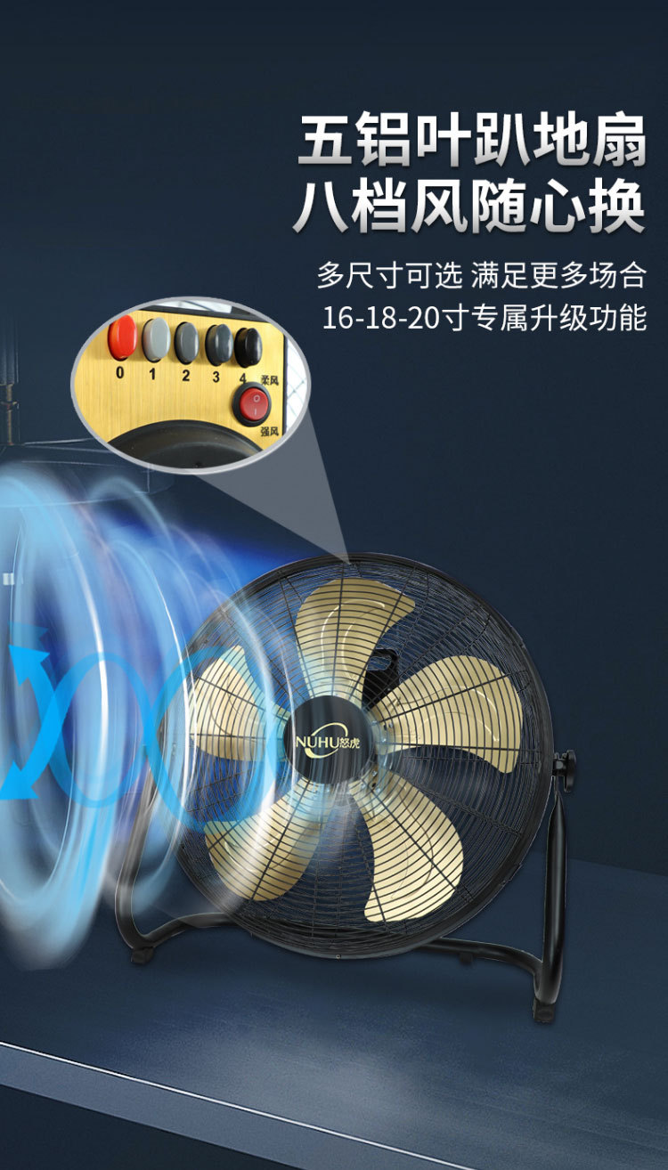 20-inch black floor fan [five aluminum leaves strong strong wind eight speed control network lengthened cable]]