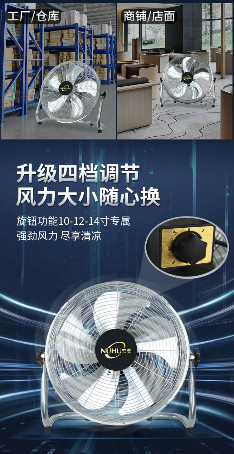 14-inch silver floor fan [three aluminum leaf four-speed speed control network lengthened cable]]
