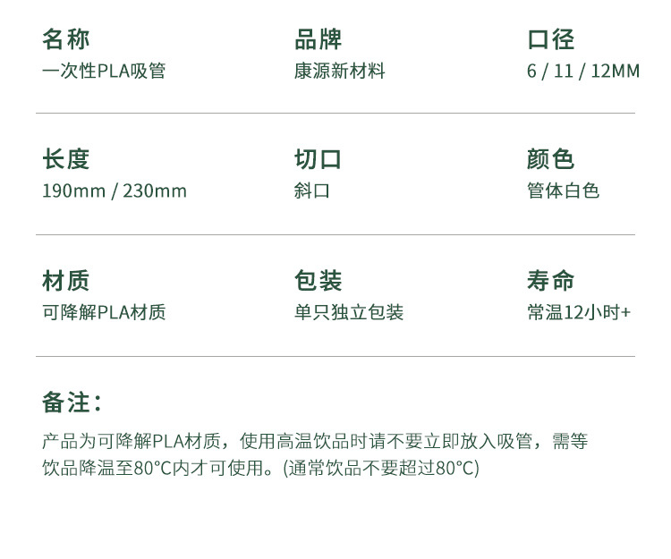 white 6*190 biodegradable high temperature resistant 80°c 100 pcs/1 pack