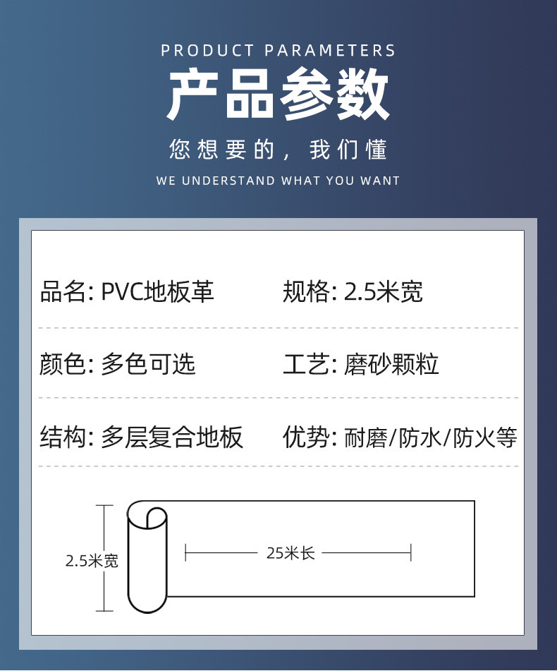 2.5 m wide thickening and wear-resistant white core diamond leather-blue marble