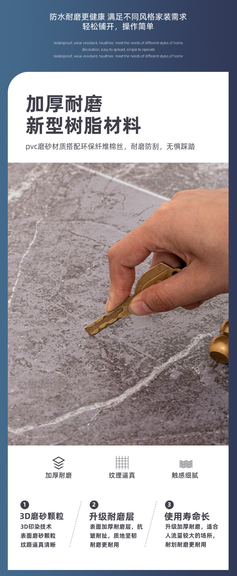2.5 m wide thickening and wear-resistant white core diamond leather-gray marble