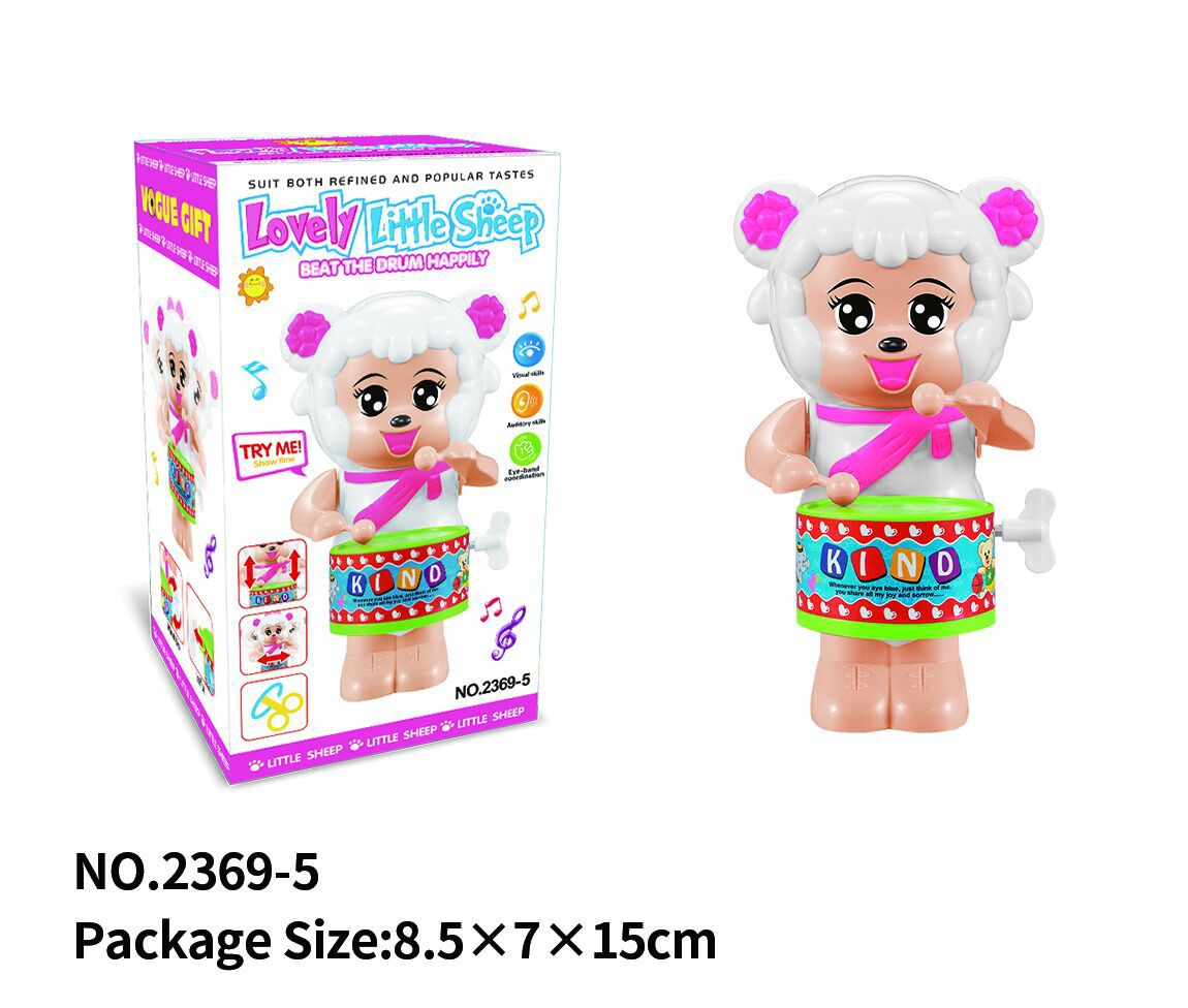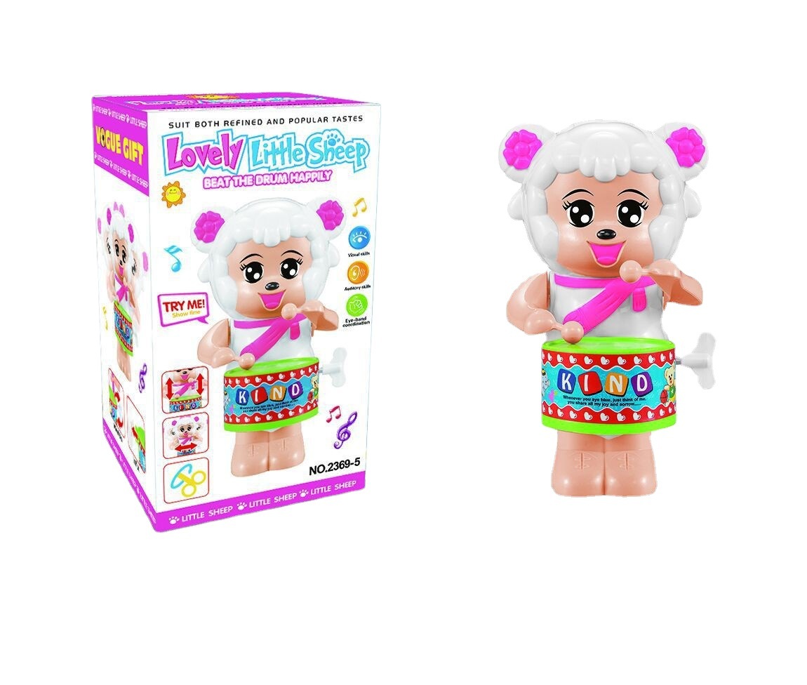 Explanation:1. Manual wind, energy-saving and environmental protection.Swaying left and right and hitting the drum up and down, so cute, so cute.3. Realistic images, babies love them.4. Loud sounds help develop baby's hearing ability.5. Wind the spring clockwise on the left side to strike the drum. The operation is simple and also saves money.
