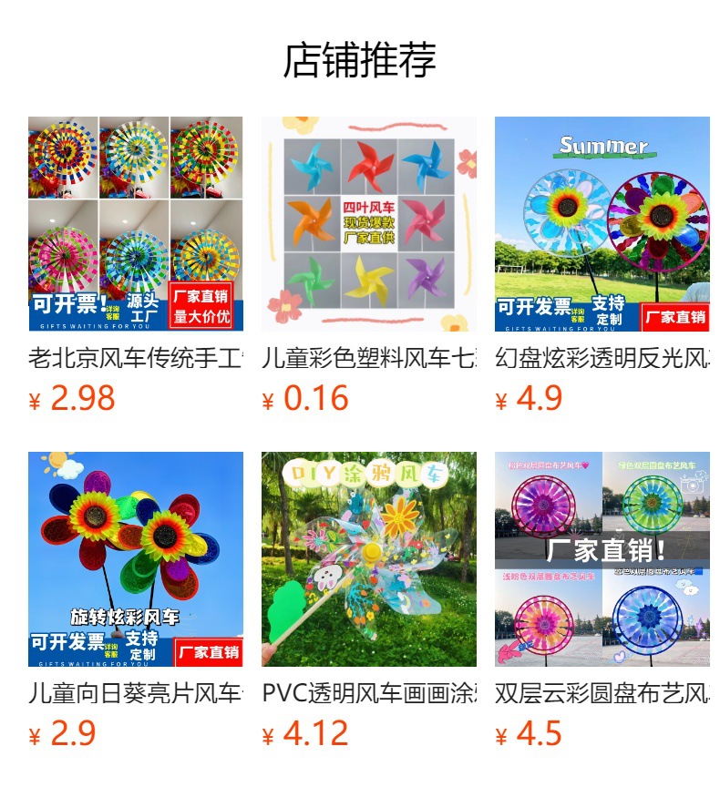 | windmill diameter 42cm with wooden pole 60cm (shoot in multiple of 10) | CN¥ 5.8 | 999081 piece available |