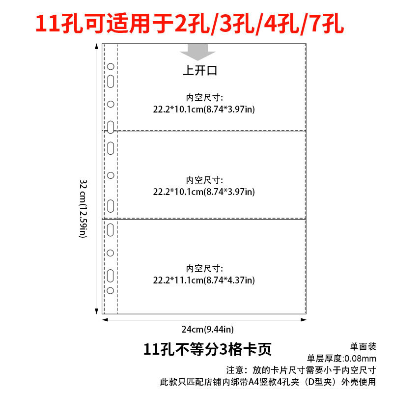 a4 11-hole horizontal 3-grid card page 10 pieces 41#