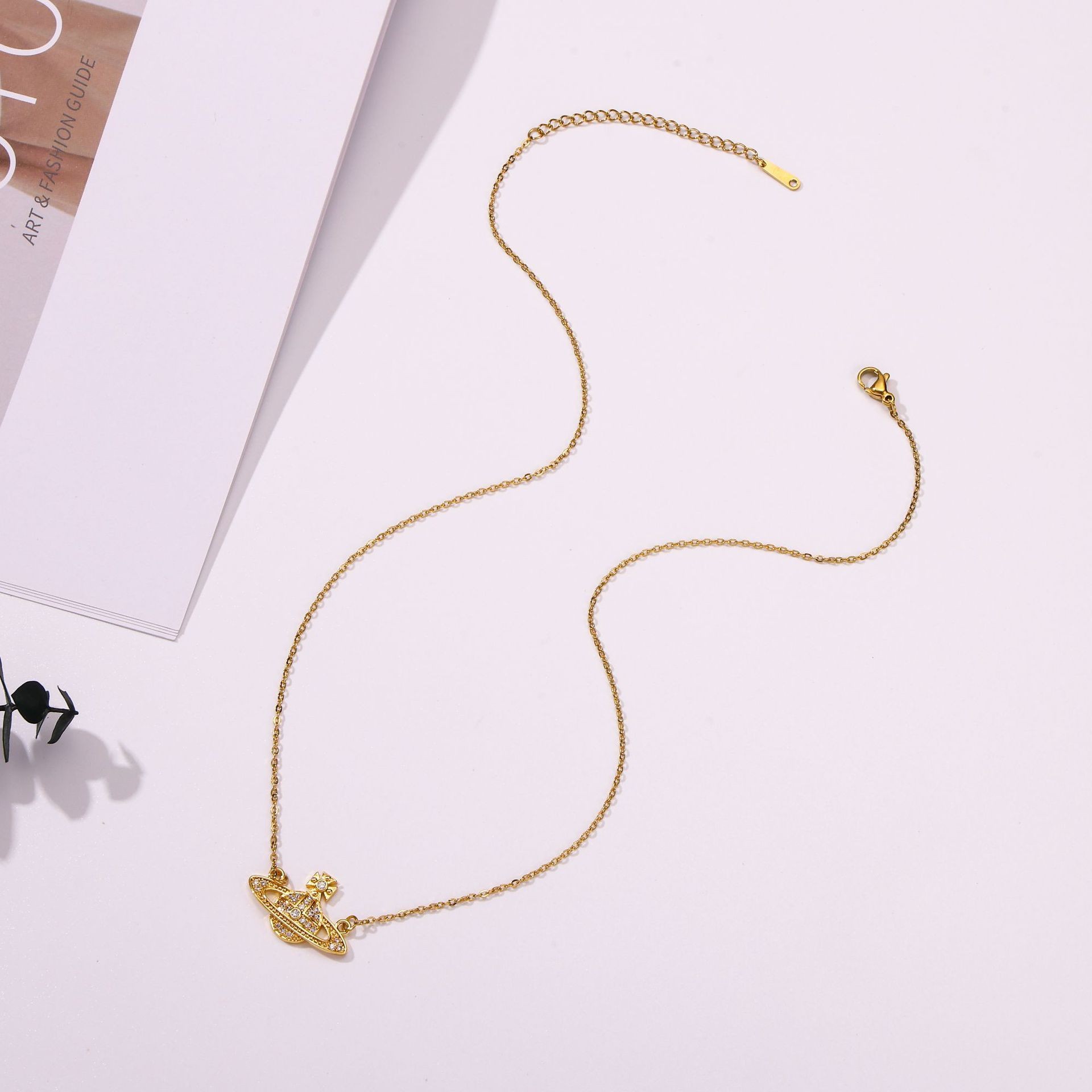 saturn necklace gold
