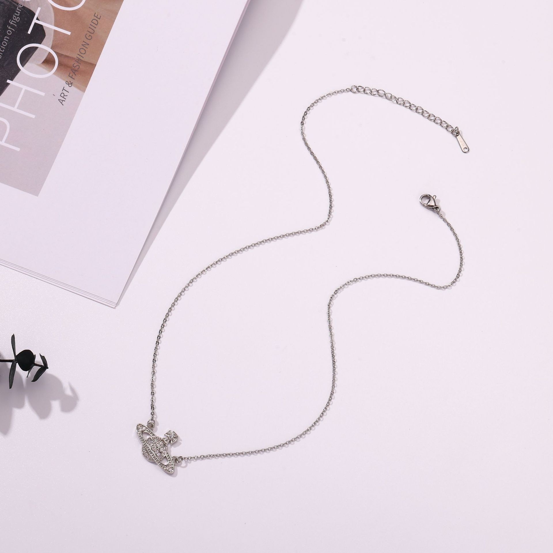 saturn necklace silver