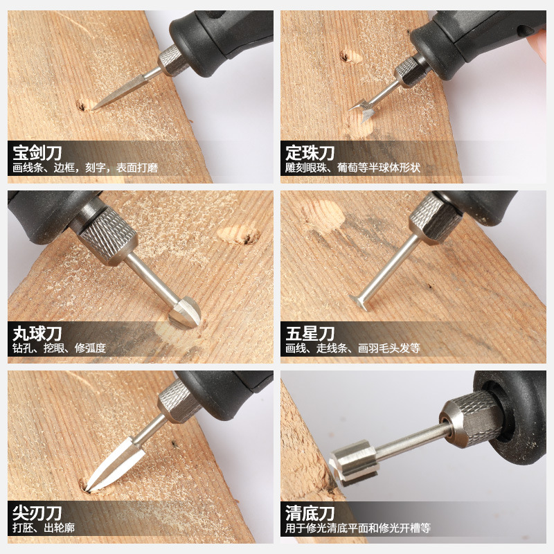 rod 3mm head 4mm wood carving five pieces suit (13g)