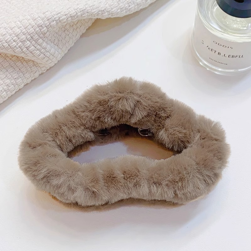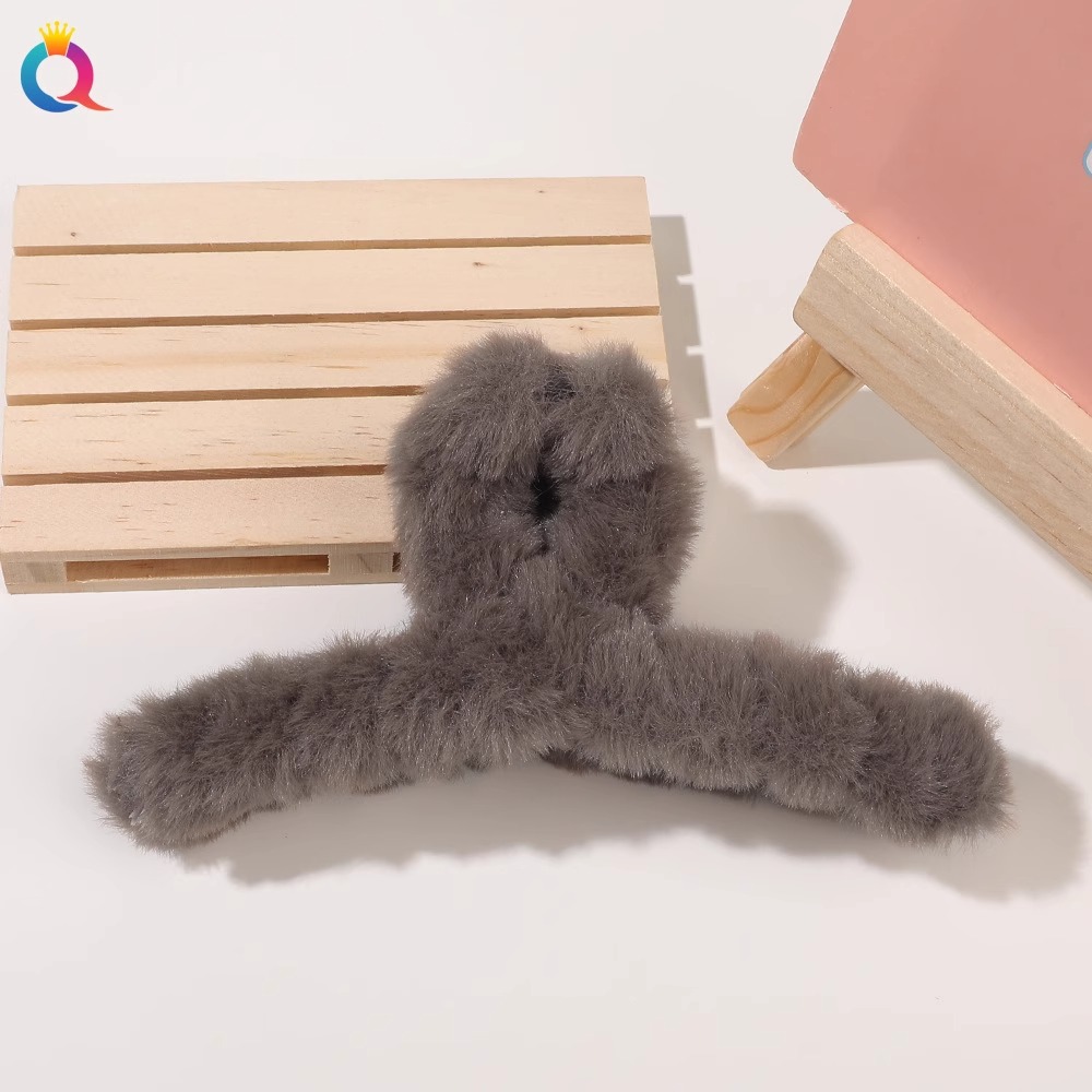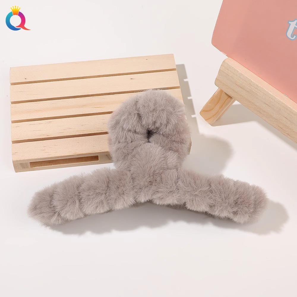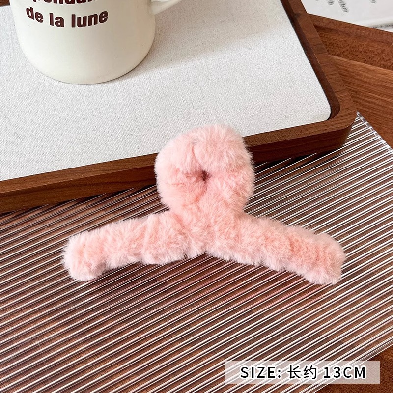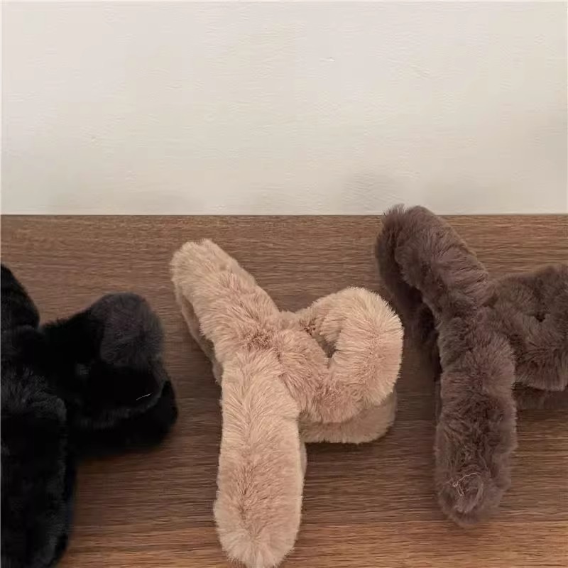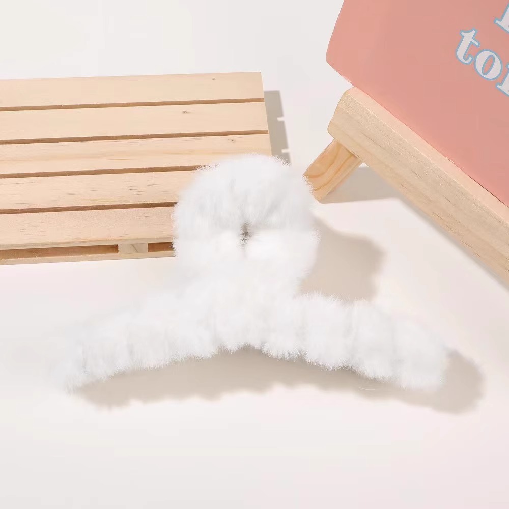 hairy hair clips women's back head hair plush grip big clip headdress shark clip large furry high-grade
