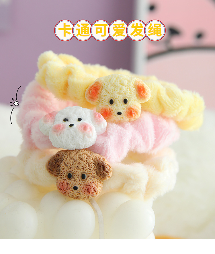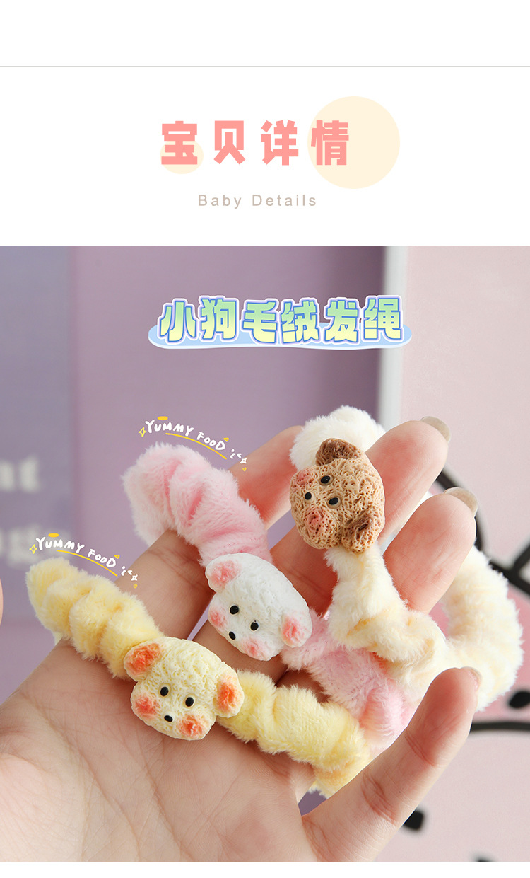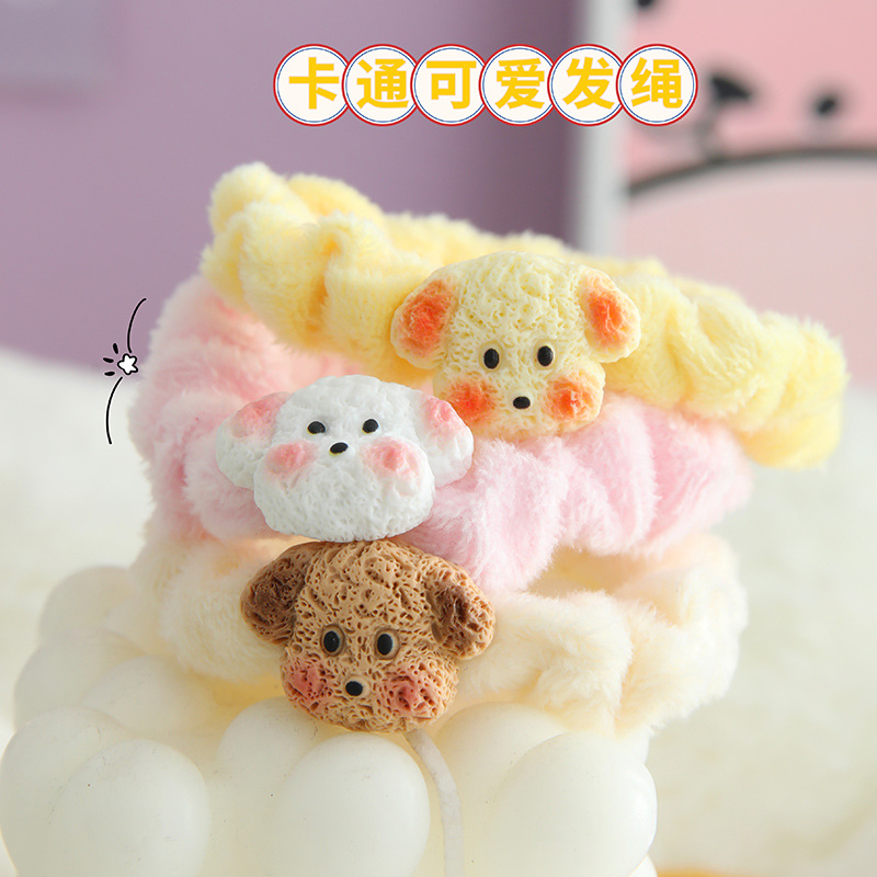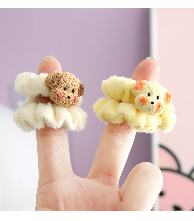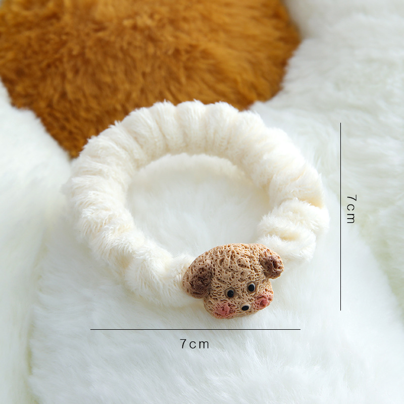cute coffee color puppy plush small intestine ring hair ring japanese soft and adorable girl ponytail hair string rubber band hair accessories winter new 中文版